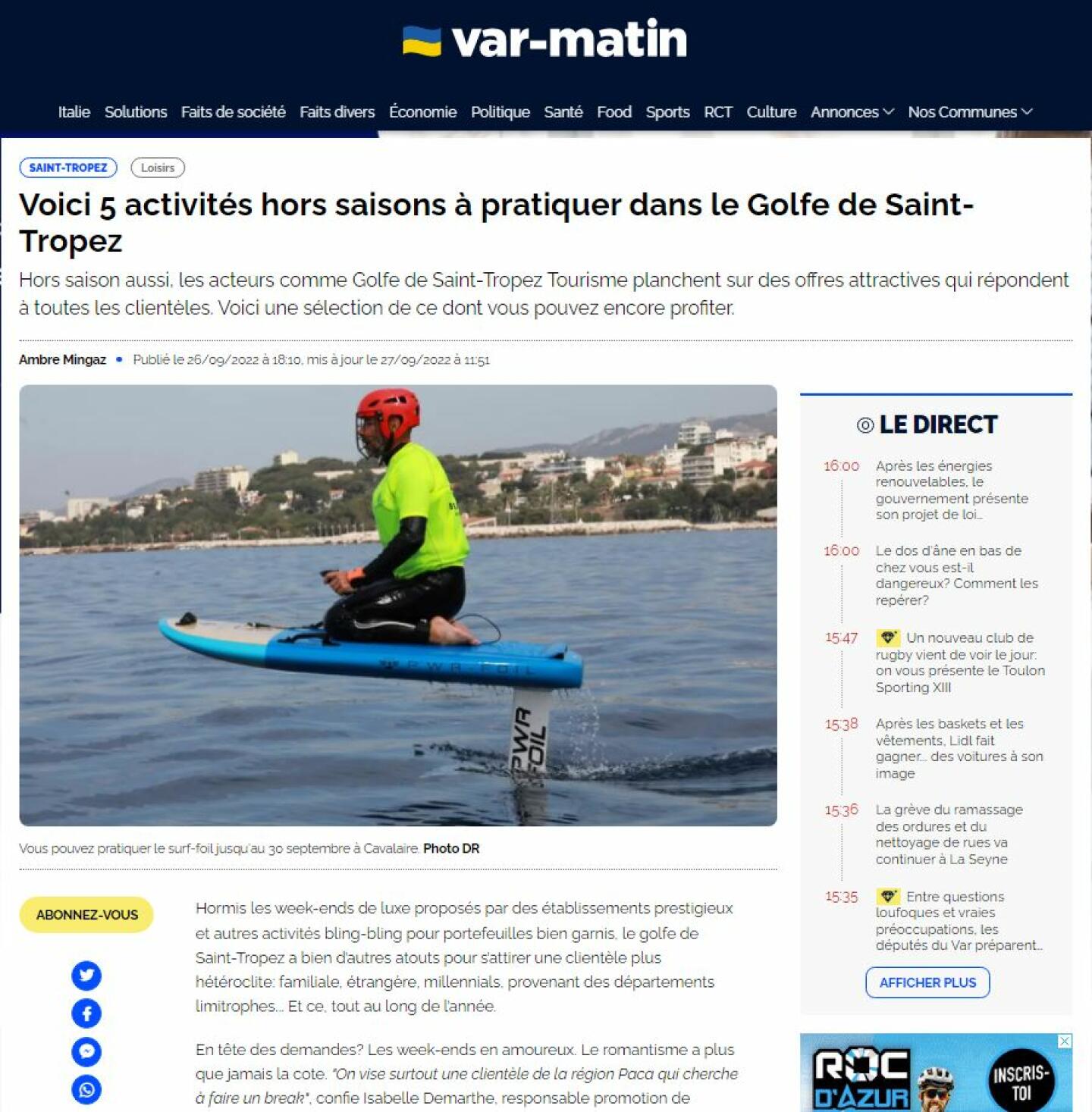 Var Matin s'est intéressé à l'après-saison dans un article où 5 activités à pratiquer toute l'année sont mises en valeur.