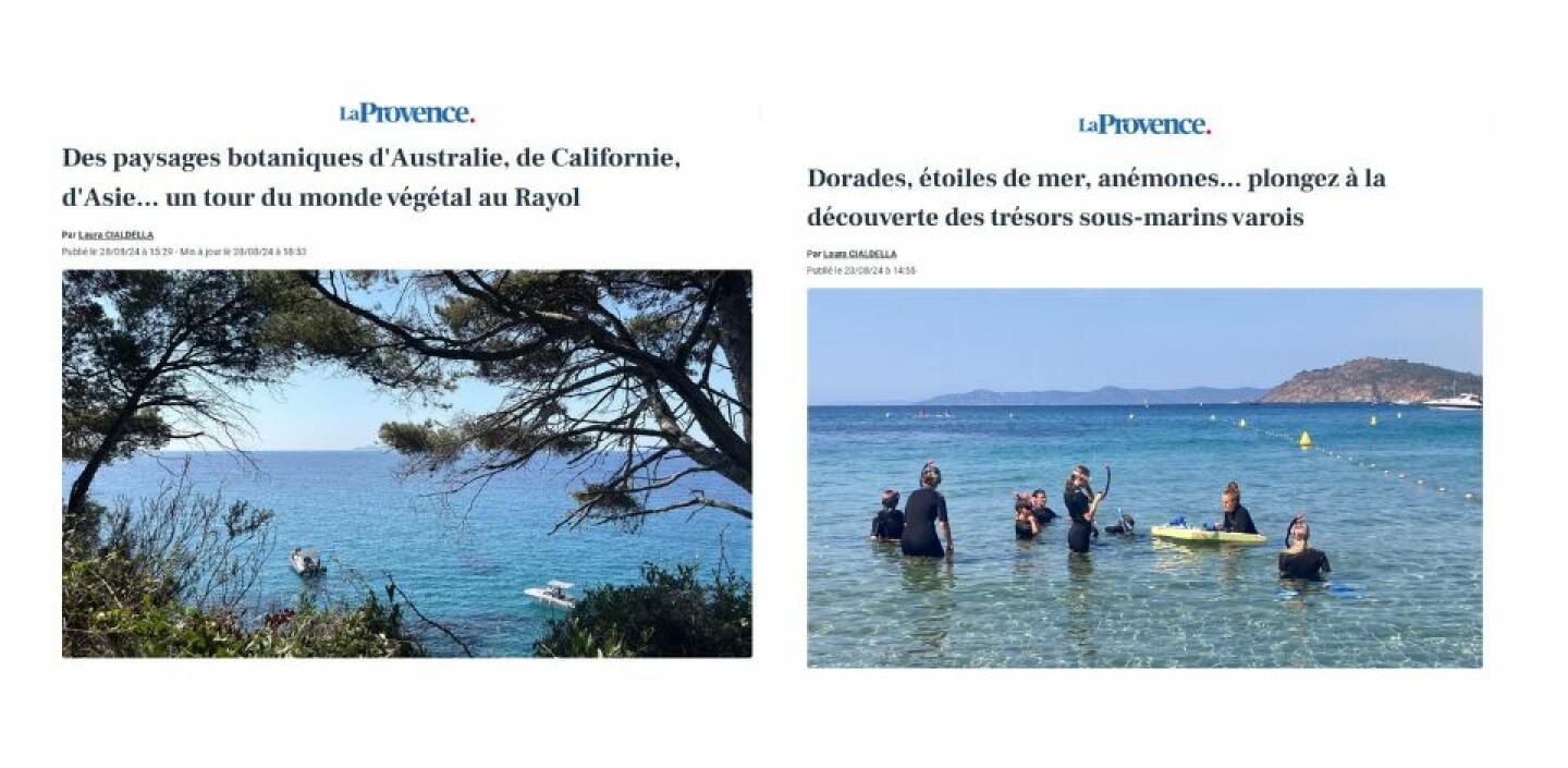 Le journal La Provence est venu nous rendre visite dans le cadre d’un accueil pesse en collaboration avec Var Tourisme. La journaliste Laura Cialdella a rédigé deux articles au Domaine du Rayol, mettant en lumière ce dernier, l’un des joyaux de notre territoire.