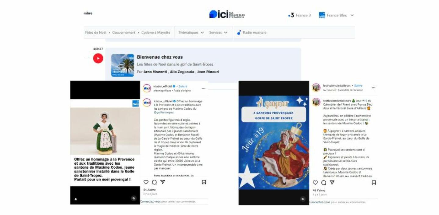 France Bleu Azur célèbre les traditions provençales avec une chronique dédiée à Noël dans le Golfe de Saint-Tropez. Christine Pianigiani a reçu M. Leonelli, 2e vice-président de la Communauté de Communes délégué au tourisme, pour évoquer la magie des fêtes locales dans une interview. Parmi les initiatives phares : la dotation de santons uniques pour le calendrier de l’Avent de France Bleu et un focus sur la crèche exceptionnelle de Maxime Codou, véritable symbole des savoir-faire provençaux.