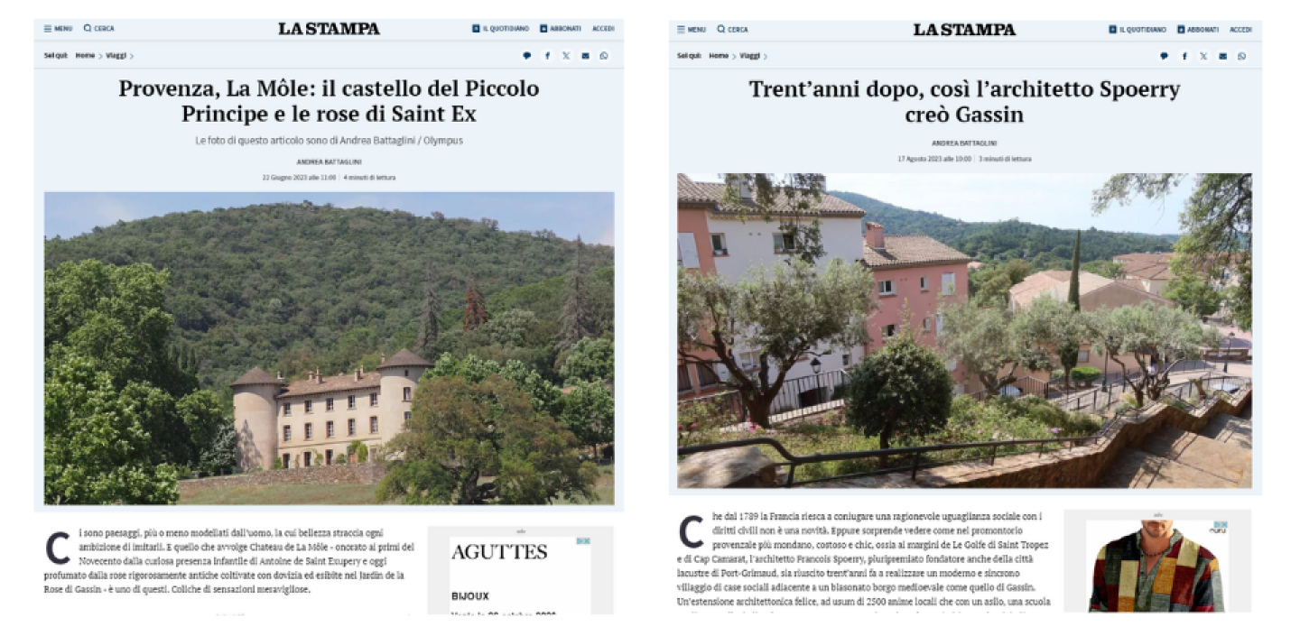Suite à l'accueil presse du journaliste et photographe Andréa Battaglini en juin dernier, voici 4 articles parus sur le site web du grand quotidien italien "La Stampa" (800 000 visiteurs/jour), rubrique Voyage :