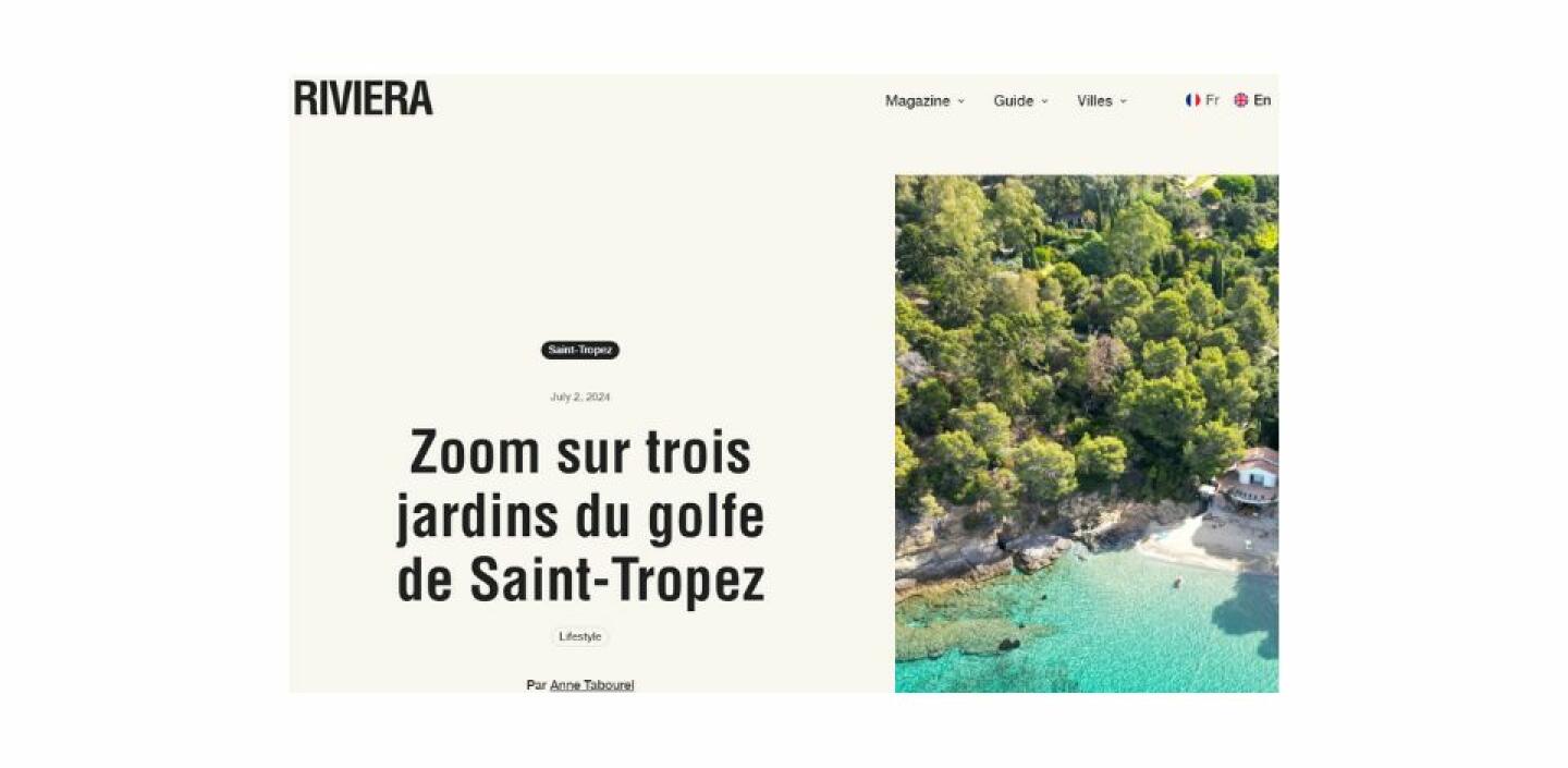 En juin dernier, nous avons eu le plaisir d’accueillir la journaliste Anne Tabourel du Riviera Magazine pour un reportage consacré aux plus beaux jardins du Golfe de Saint-Tropez.
