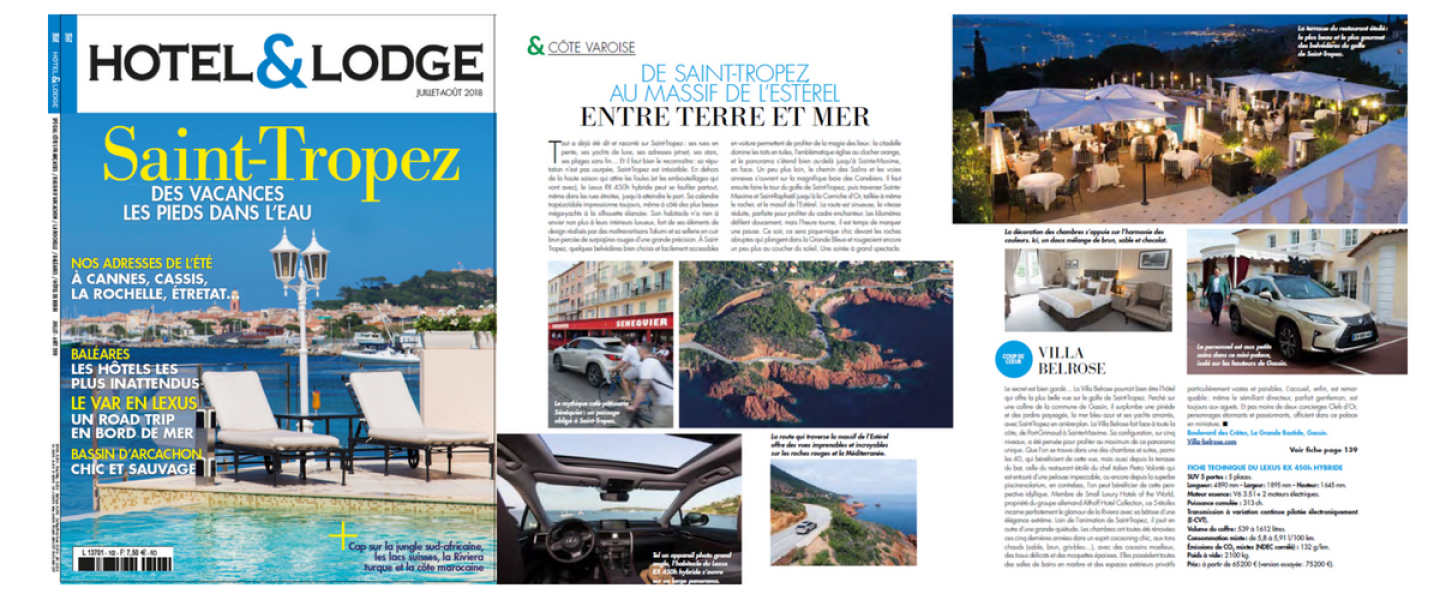 En partenariat avec Var Tourisme, Golfe de Saint-Tropez a conseillé la rédactrice en chef du Magazine Hotel & Lodge, Céline Baussay, qui était à la recherche d'établissements d'exception pour un article dédié au lancement de la nouvelle Lexus sur la côte varoise.