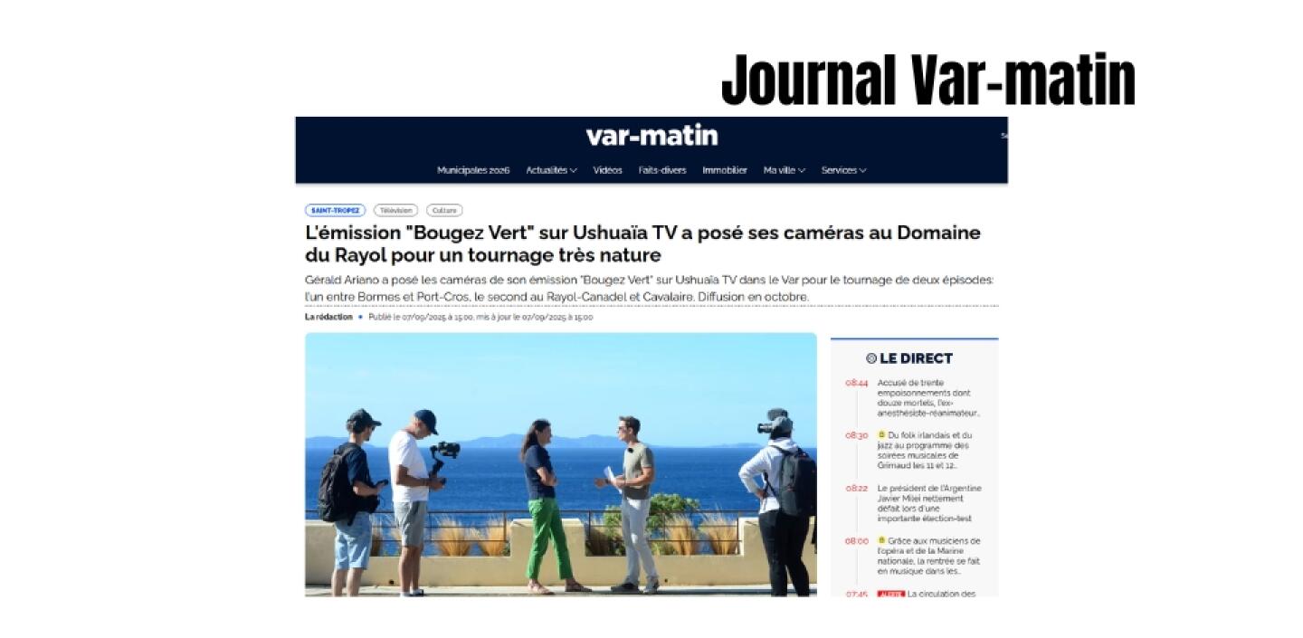 En septembre 2025, le Service Promotion de la communauté de communes du golfe de Saint-Tropez a accueilli Gérald Ariano pour l’émission Bougez Vert, diffusée sur Ushuaïa TV (Groupe TF1), lors d’un tournage au Domaine du Rayol.