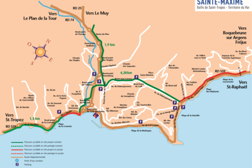 Le Parcours Cyclable du Littoral Six-Fours/ST. Raphaël (V65 du schéma National des Véloroutes et Voies Vertes) permet de parcourir en grande partie le littoral varois par la côte ou l'intérieur des terres en suivant le tracé de l’ancienne voie de chemi...