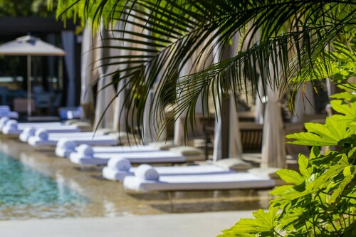 Cet hôtel de plein air, idéalement situé sur la plage de Pampelonne, a la particularité de proposer des hébergements originaux et dépaysants, en plein cœur de la nature