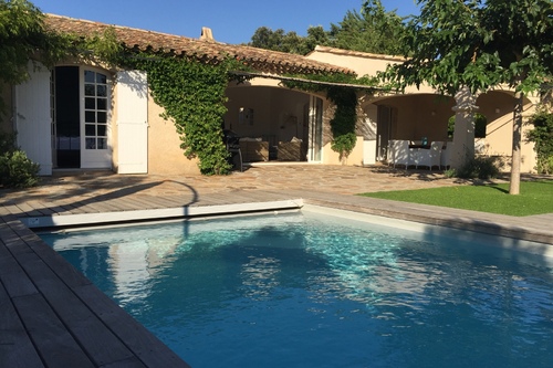 Villa provencale dans son jardin avec piscine et petite vue mer. Proche plage. Région de Saint Tropez.