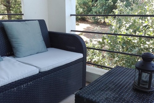 Cet appartement de 50m2 se situe à l'étage d'une villa sur la route menant de Gassin à Saint-Tropez, à 100 mètres du bord de mer. Il dispose de place de stationnement et du confort nécessaire à un séjour parfait à quelques kilomètres du village médiéval.