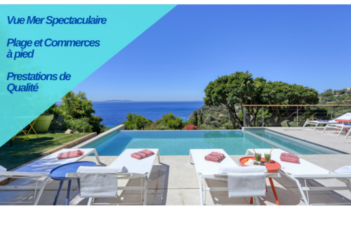 Villa de 5 chambres parfaitement équipée et de haut standing. En face des Îles d'Hyères et orientée sud, la vue mer est spectaculaire.