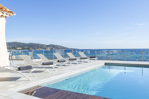 Emplacement exceptionnel avec superbe vue mer, piscine et terrain de pétanque, à deux pas des commerces et de la plage. 6 chambres climatisées, 5 salles de bains, grand confort intérieur/extérieur. Villa 5 étoiles, tout compris, taxe incluse.