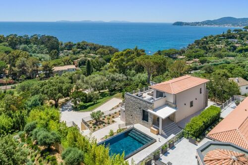 Magnifique villa d'architecte avec belle piscine à débordement et vue panoramique sur la mer et les ïles d'or.