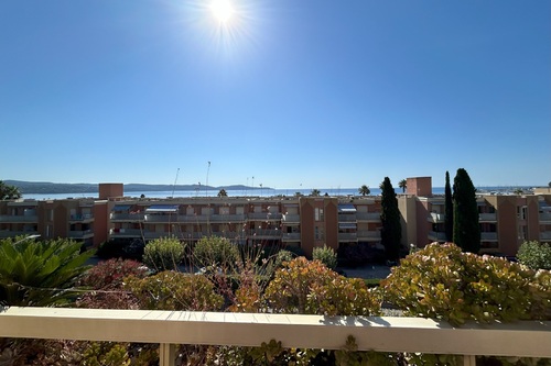 Appartement T3 dans résidence calme, proche des commerces avec vue sur mer et les Îles d'or.