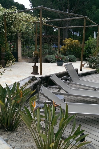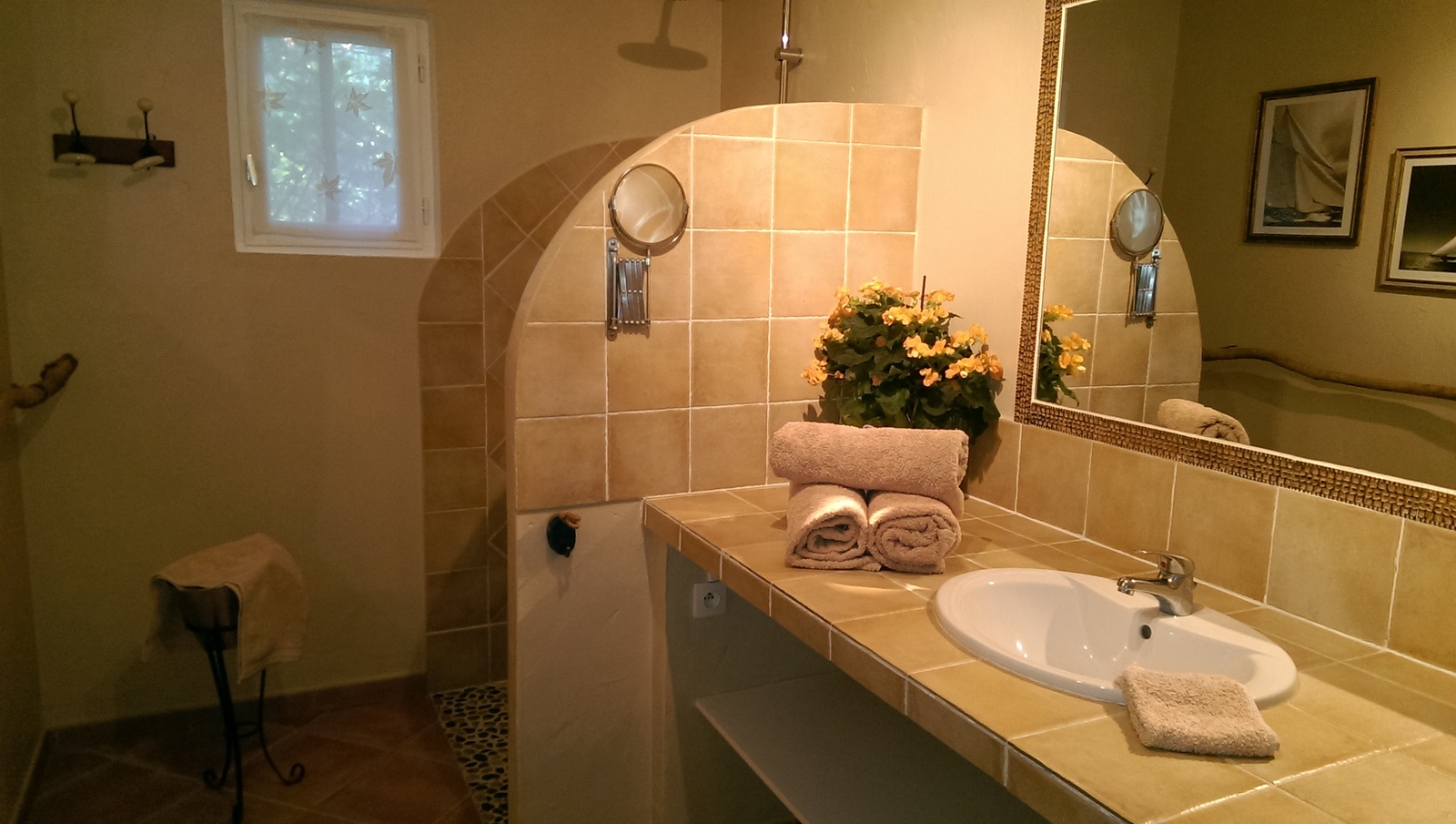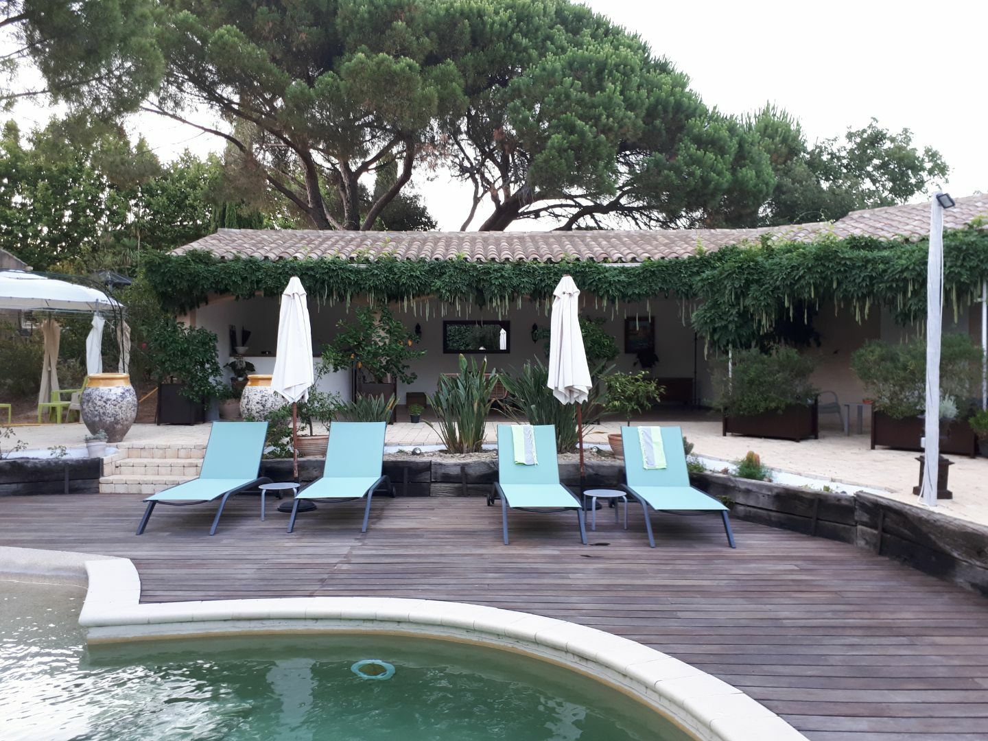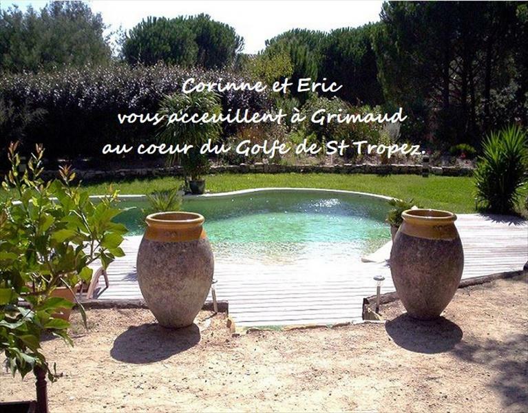 Notre bastide est située dans la campagne grimaudoise, entourée de pins parasols. Nous vous y accueillons pour un séjour de détente, dans une ambiance chaleureuse et conviviale. Les petits déjeuners avec confitures et gâteaux maison vous seront servis à l'ombre des pins, au bord de la piscine, ou sous la terrasse, si le temps est capricieux. Vous pourrez profiter de faire une sieste au bord de la piscine, ou lire un bon livre dans le salon du pool-house. Nous pourrons vous conseiller dans vos choix de visites pour que vous gardiez un bon souvenir de votre séjour sur Grimaud et ses environs.2 chambres à votre disposition: