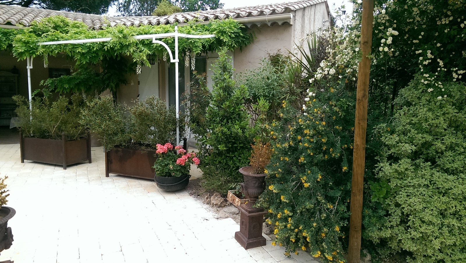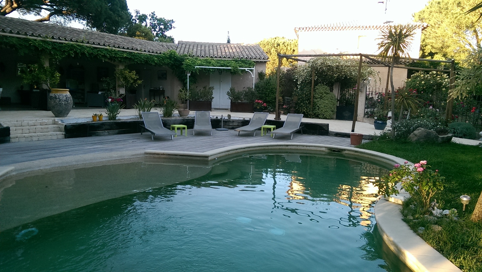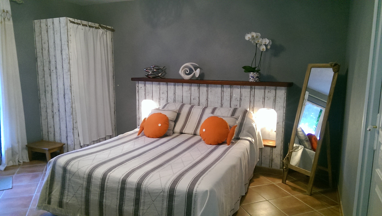 Notre bastide est située dans la campagne grimaudoise, entourée de pins parasols. Nous vous y accueillons pour un séjour de détente, dans une ambiance chaleureuse et conviviale. Les petits déjeuners avec confitures et gâteaux maison vous seront servis à l'ombre des pins, au bord de la piscine, ou sous la terrasse, si le temps est capricieux. Vous pourrez profiter de faire une sieste au bord de la piscine, ou lire un bon livre dans le salon du pool-house. Nous pourrons vous conseiller dans vos choix de visites pour que vous gardiez un bon souvenir de votre séjour sur Grimaud et ses environs.2 chambres à votre disposition: