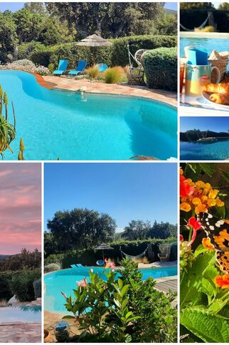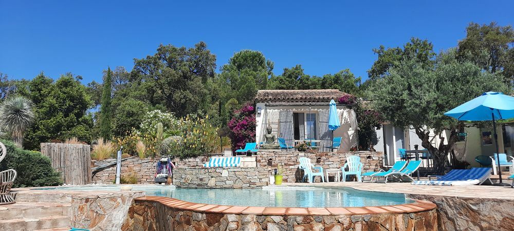 * Spacieux LOFT rez de villa (idéal et max 4 personnes) en GESTION LIBRE : De grands espaces ouverts : 1 lit Queen size, 2 lits simples, 1 canapé-lit, espace cuisine toute équipée, salon avec TV, espace repas, babyfoot, salle d'eau (douche italienne & WC), ventilateur de plafond et/ou clim, terrasse privative salon de jardin, vue sur les collines de Grimaud et parc boisé. Accès piscine partagée avec nos clients en B&B, parking gratuit & sécurisé dans notre jardin, espace de jeux pour enfants. WIFI.
