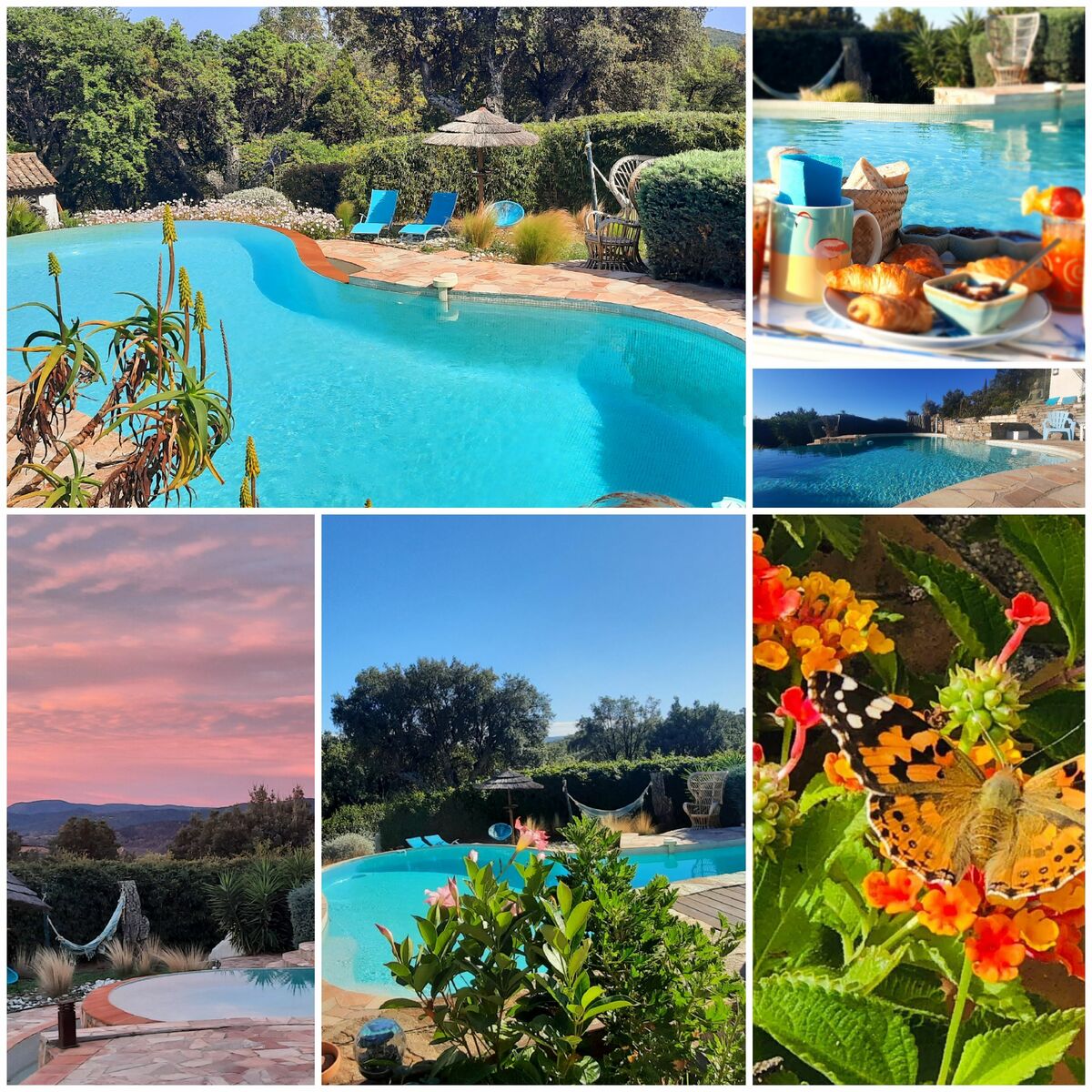 Proche des villages du Golfe de St-Tropez, à 10 min des plages, 3 chambres d’hôtes raffinées, dont 1 suite familiale, idéal pour se ressourcer !