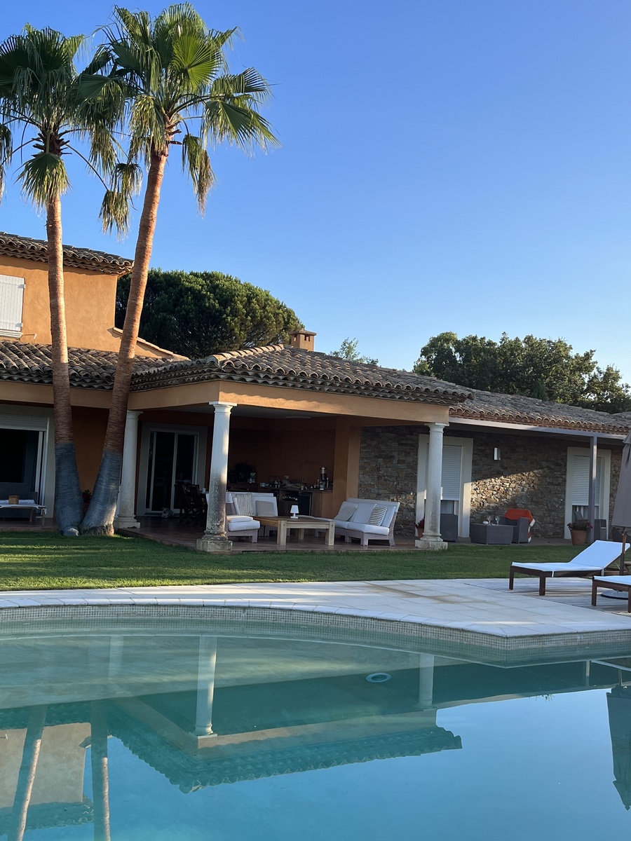 Villa au design moderne et contemporain, avec piscine, plage immergée et jardin paysagé, située entre Port Grimaud et Grimaud Village, vous proposant tout le confort pour des vacances inoubliables.