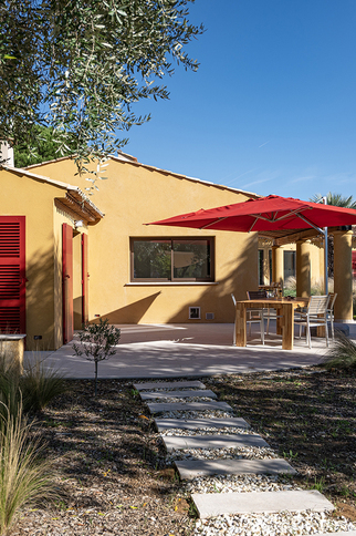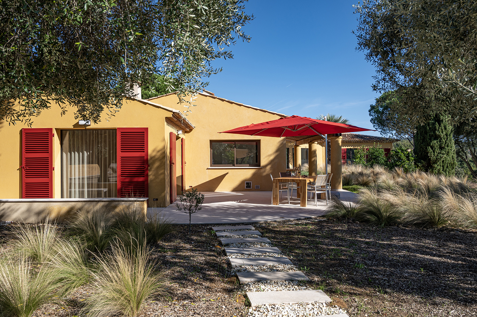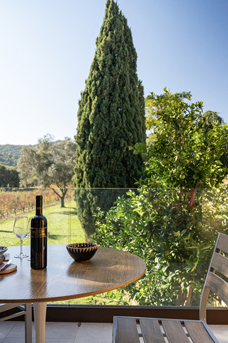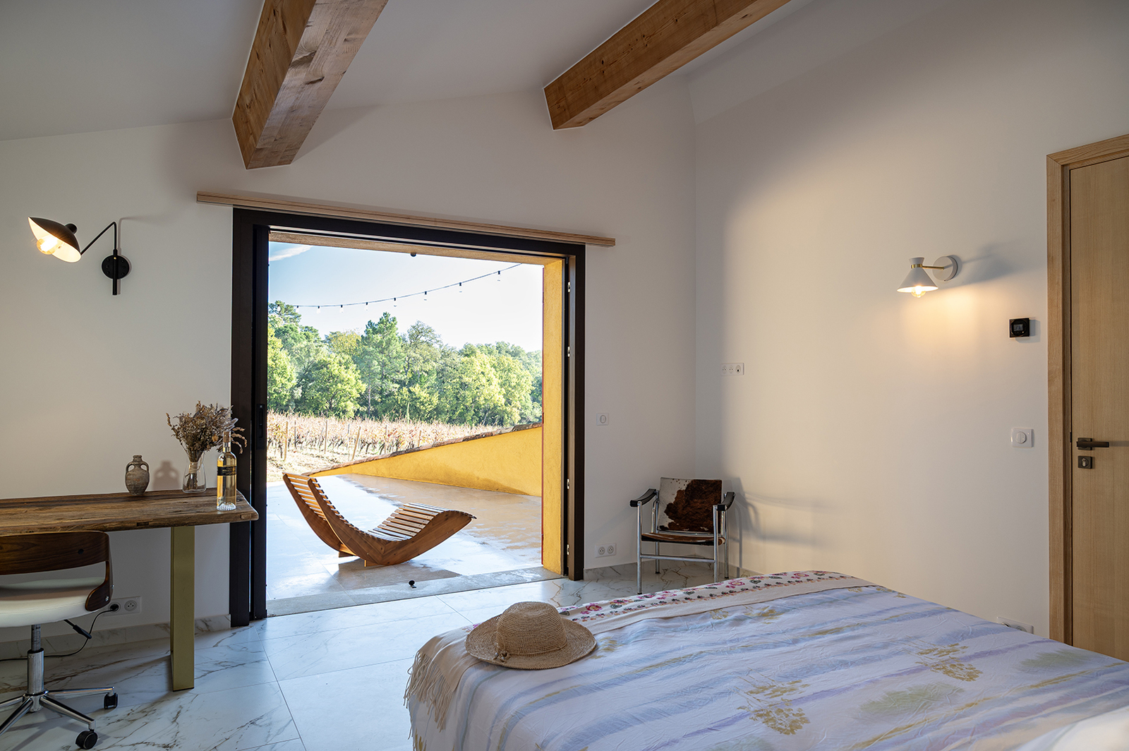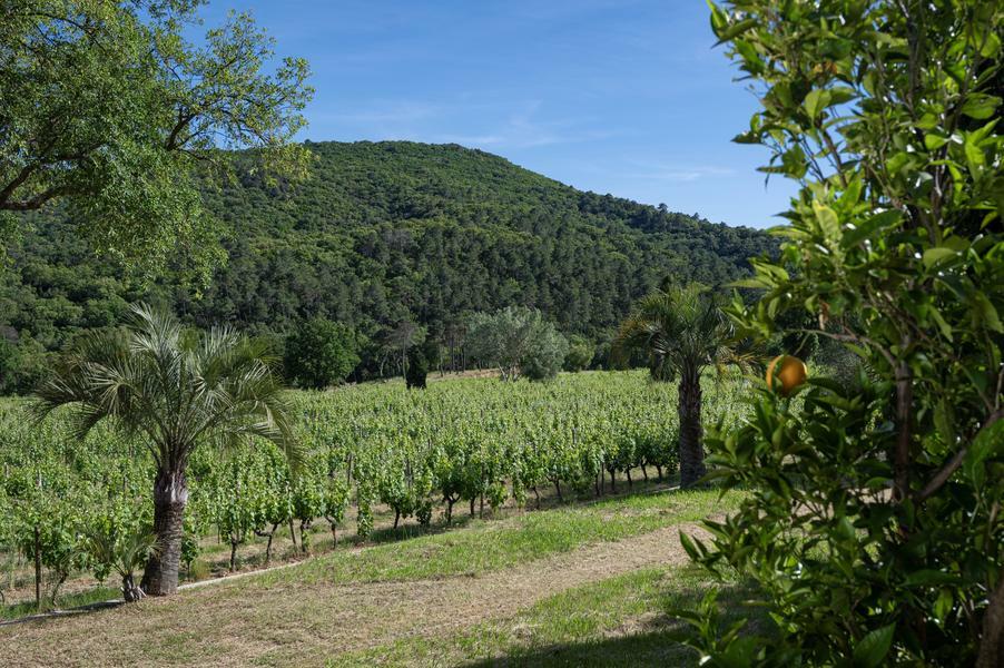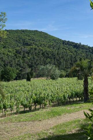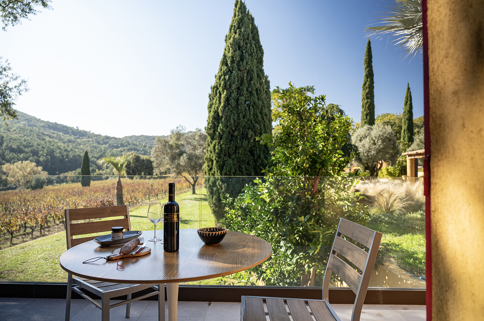 Maison d'hôtes au cœur des vignes du Domaine viticole Clos Mirages et face au Massif des Maures.
