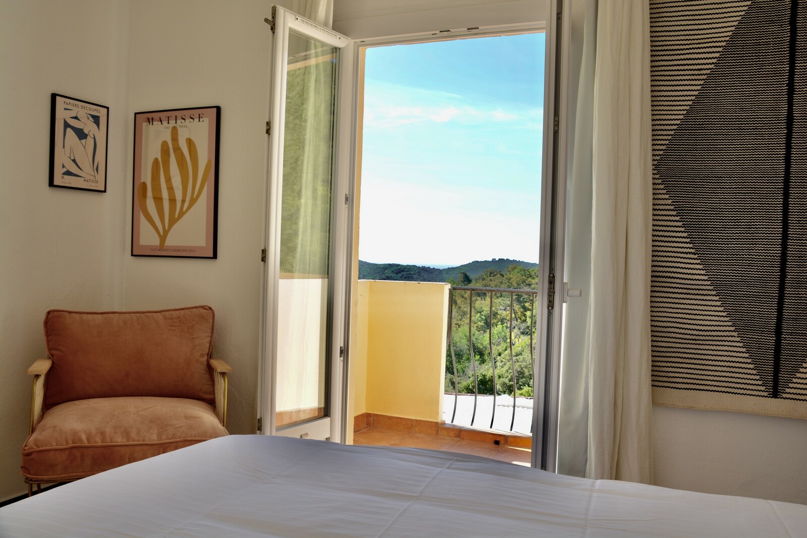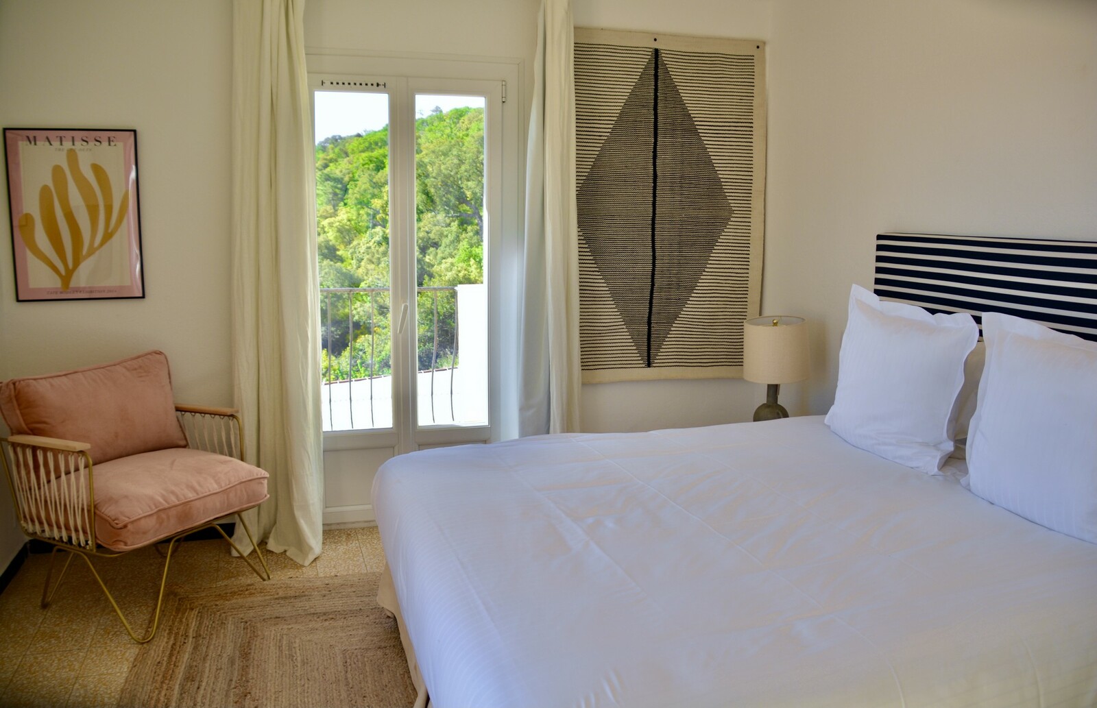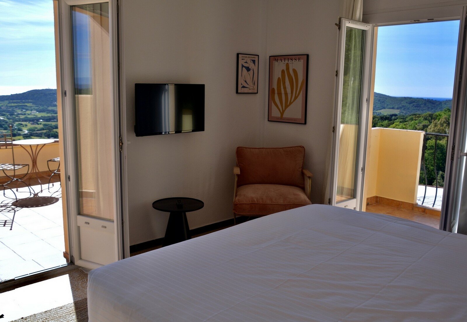 Chambres rénovées dans le plus pur style Riviera, d’inspiration Matisse, lumière douce, terrasses privées offrant une vue exceptionnelle sur ce site classé remarquable, des toits de Ramatuelle à la grande bleue en passant par les vignes, les collines, les forêts de pins et d'eucalyptus, qui en font son charme unique.