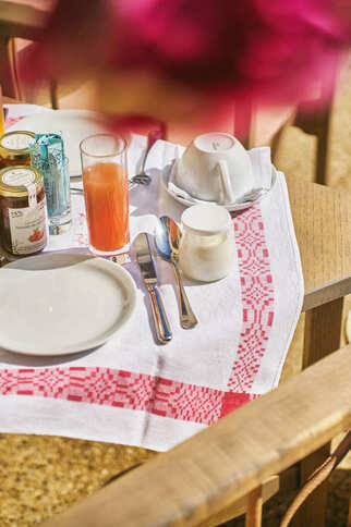 A leur Table, retrouvez des produits d'une qualité rare : fruits et légumes de saison issus de l'agriculture locale et raisonnée, poissons et langoustes de la pêche locale, desserts sans sucre réalisés au Natsuc, sans oublier l’huile d’olive et le vin rosé biodynamiques de la propriété familiale. Goûtez les spécialités : poisson à la provençale, bouillabaisse, et confitures maison. Pour votre confort, profitez d’un service 24h/24, conciergerie, parking privé surveillé, service limousine pour vos déplacements entre l'hôtel et Saint-Tropez.