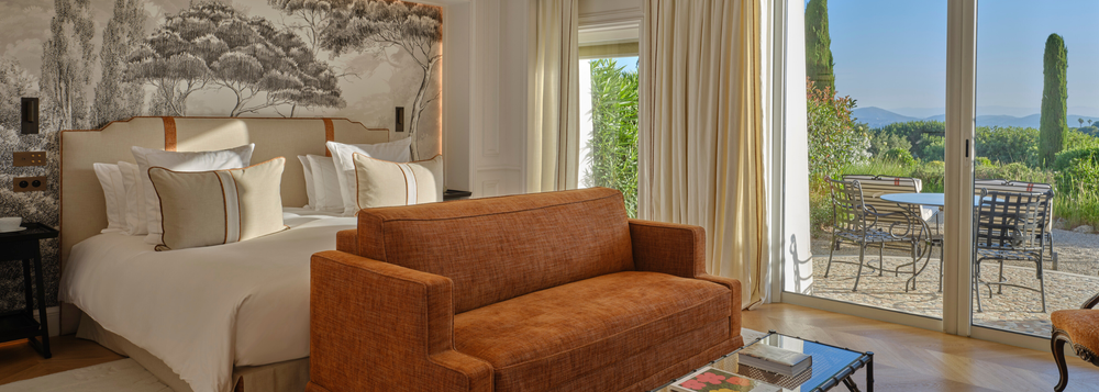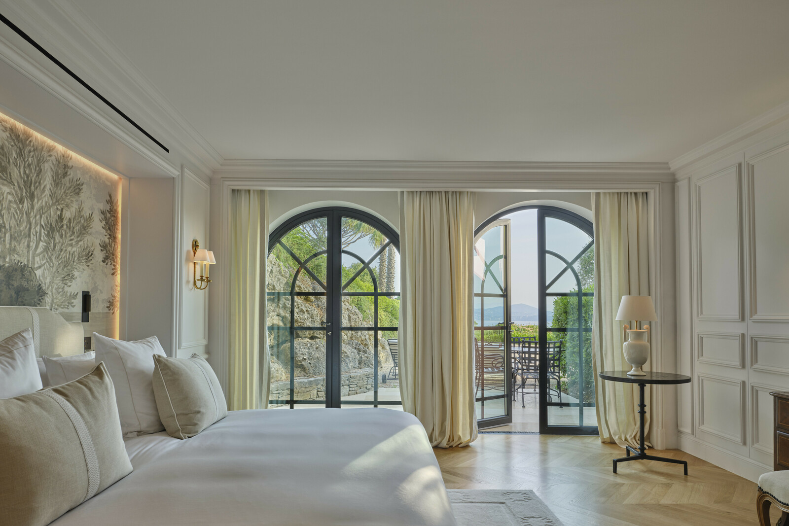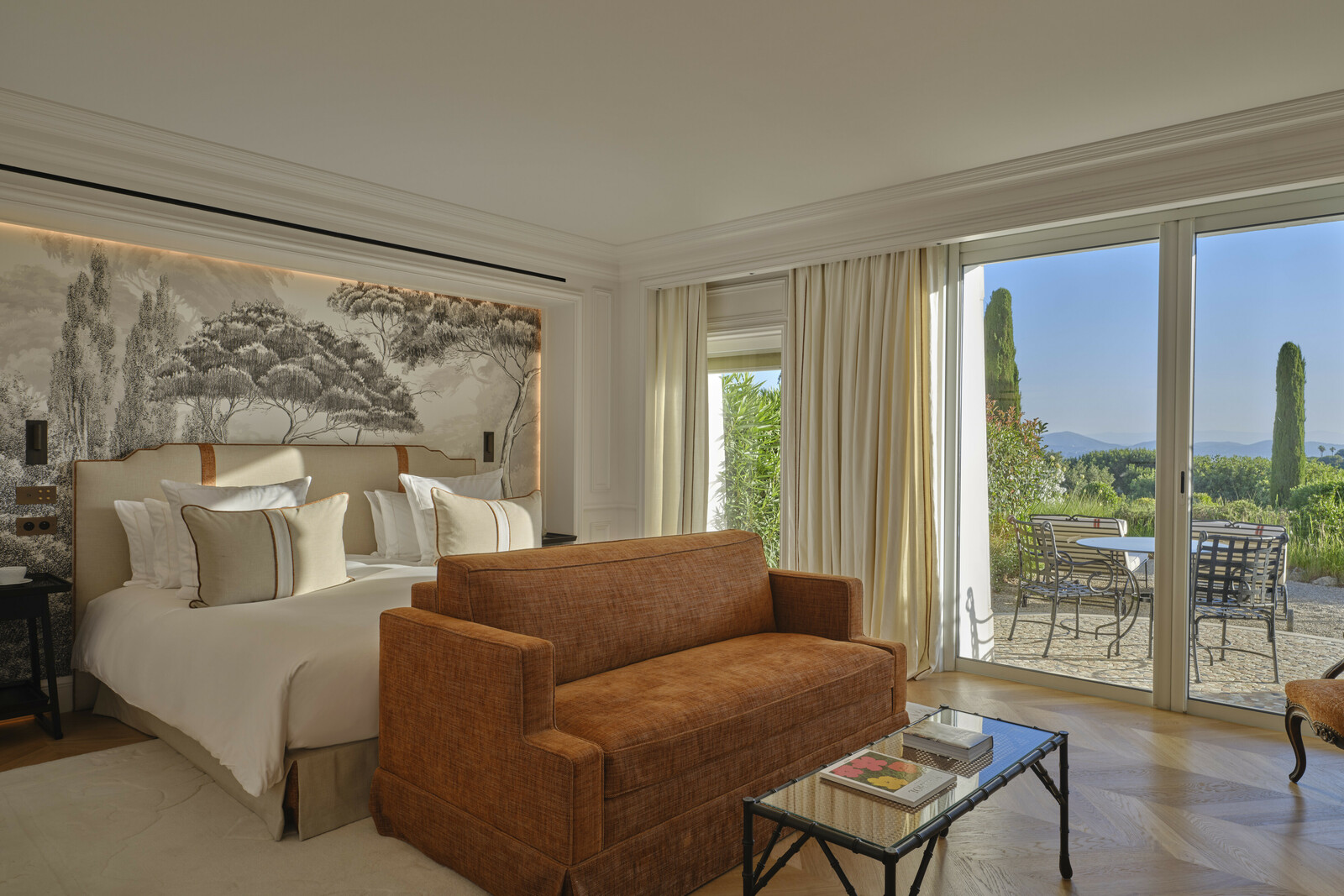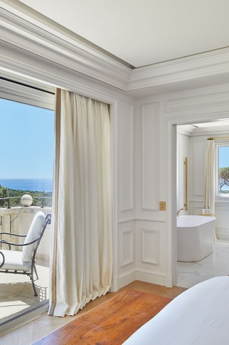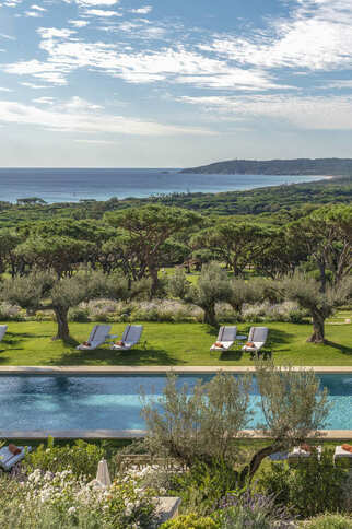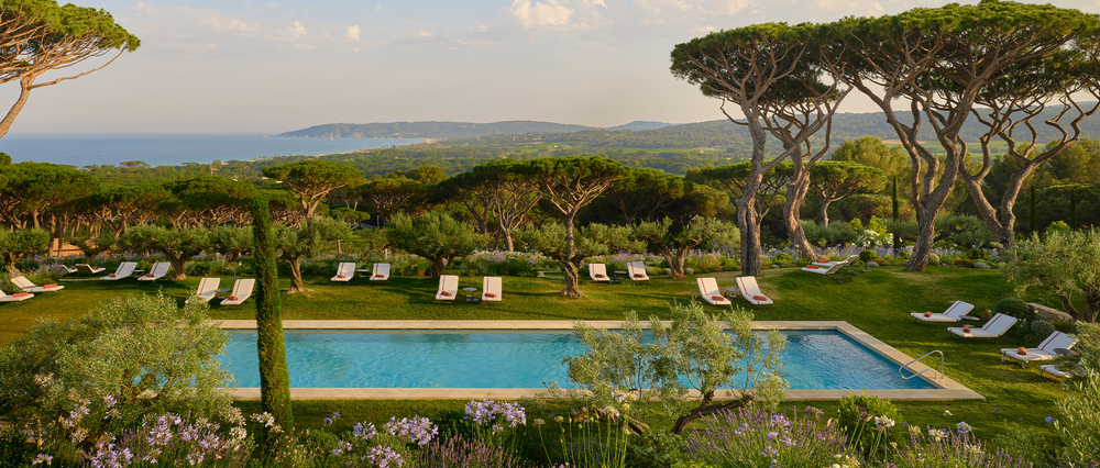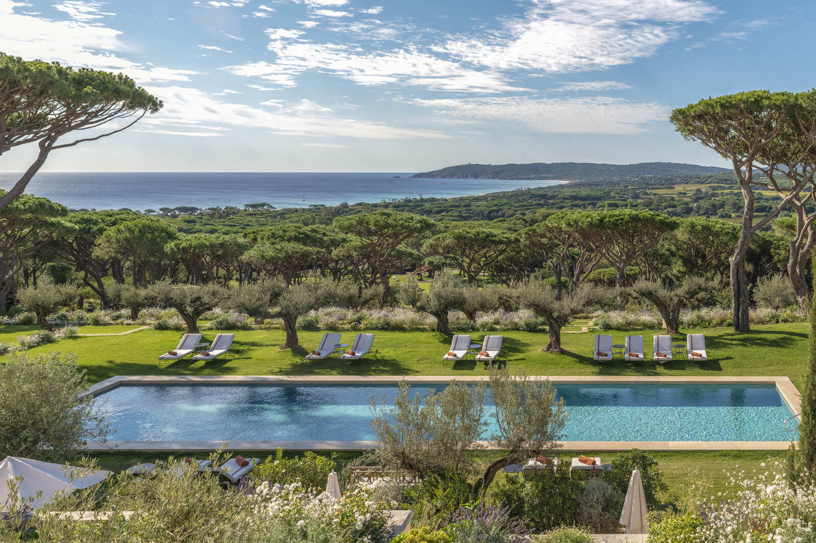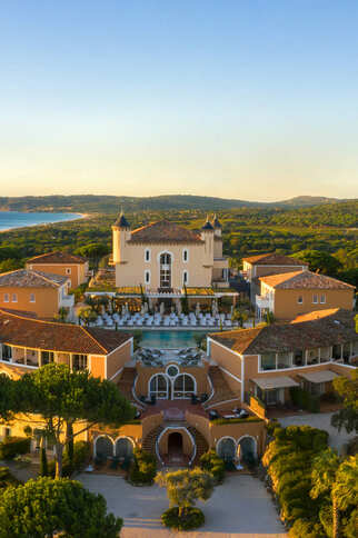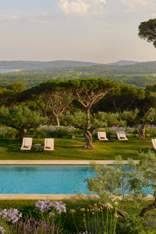 En surplomb de la baie de Pampelonne, près de la place des Lices, à Saint-Tropez, Airelles Saint-Tropez, Château de la Messardière veille sur l’une des plus belles vues de la Méditerranée.