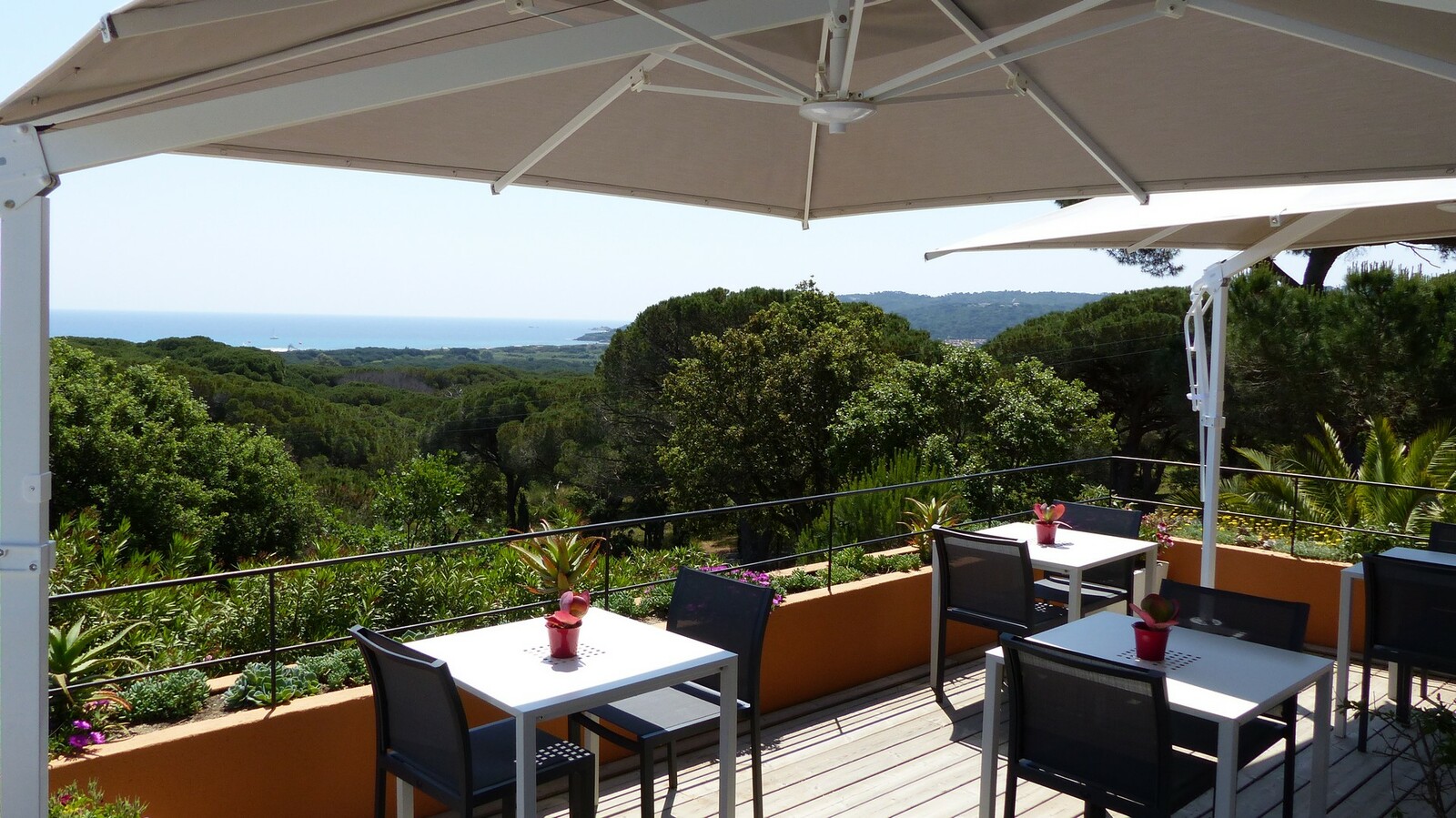 Hôtel de charme avec vue mer panoramique sur la plage de Pampelonne et le phare de Camarat.