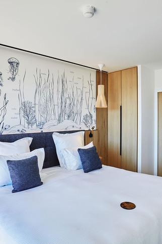 L’alliance de bois blond, ponctuée de touches de métal et de corian, d’étoffes soyeuses et de lignes épurées, apportent à nos 16 chambres et suite une tonalité intemporelle, résolument élégante.