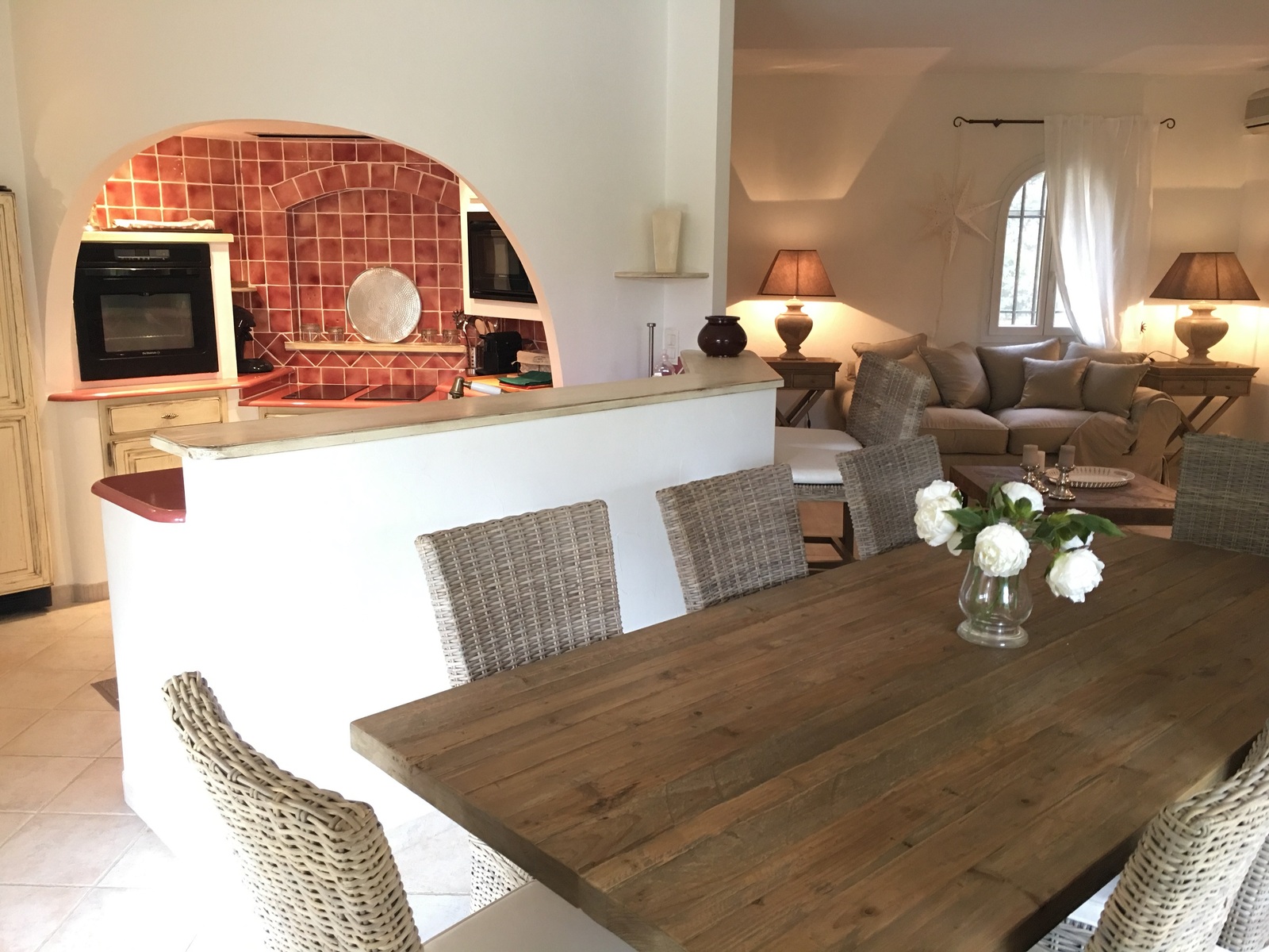 En extérieur une vaste terrasse équipée d'un salon d'été, d'une grande table conviviale (et de ses chaises) ainsi que d'une cuisine d'été (Plancha électrique, évier) vous accueillera pour partager des moments uniques face à la piscine.