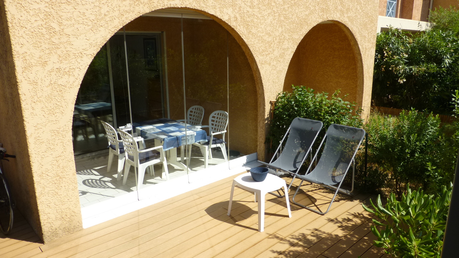 Appartement avec une climatisation réversible possédant une chambre avec fenêtre et un jardinet ensoleillé. Il est très bien équipé pour 5 personnes. Résidence de type provençal refaite à neuf en 2025 avec une piscine non surveillée et non chauffée ouverte de 9h à 21h en saison. Accès Internet avec Fibre dans l'appartement. (Nov 2025).Loggia 6 m² + terrasse de 19 m² bien ensoleillées. Résidence provençale sécurisée avec piscine.