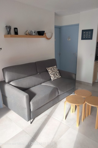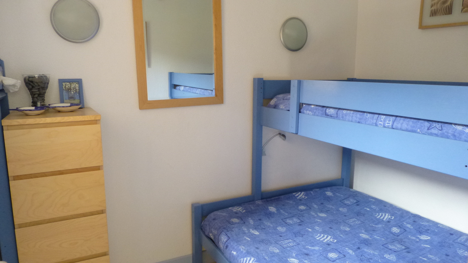 L 'appartement dispose de trois couchages (1 lit 2 pers et 1 lit superposé 1 pers) dans la chambre cabine et d’un couchage pour deux personnes dans la pièce principale dans un convertible de très bonne qualité type « rapido » changé en 2023.