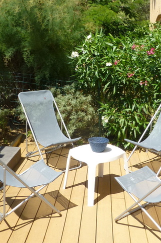 Vous pouvez profiter d'un petit jardin privé (avec transats) clôturé de 20 m² et bien ensoleillé. Le jardin est recouvert d'une terrasse en bois. Il est fermé par un portillon. Une loggia d’un peu plus de 6 m² complète également l’appartement. Elle peut se fermer ou s'ouvrir complétement en fonction des conditions climatiques.