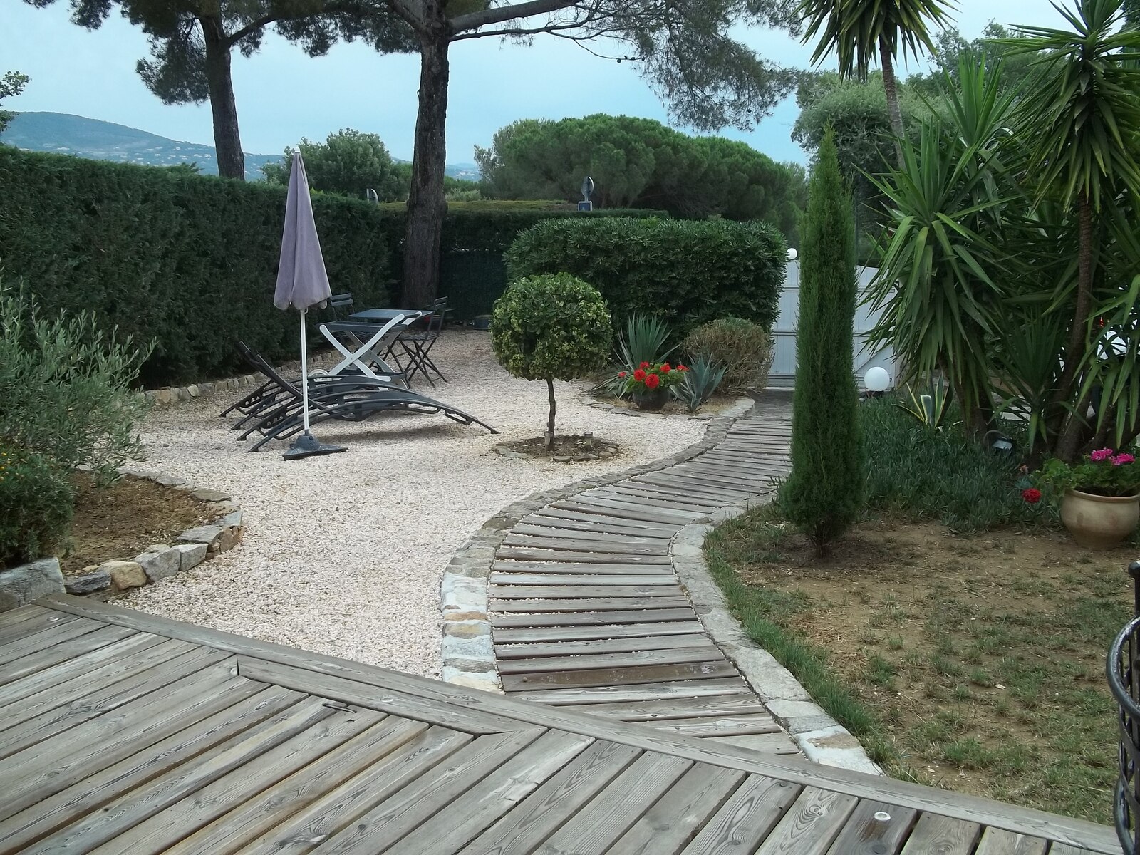 A 4 km de Saint-Tropez, agréable mas climatisé dans un domaine résidentiel sans vis à vis sur un terrain privé de 250 m2 entièrement clôt avec parking privé et possibilité de rentrer votre voiture à l'intérieur sur la propriété.