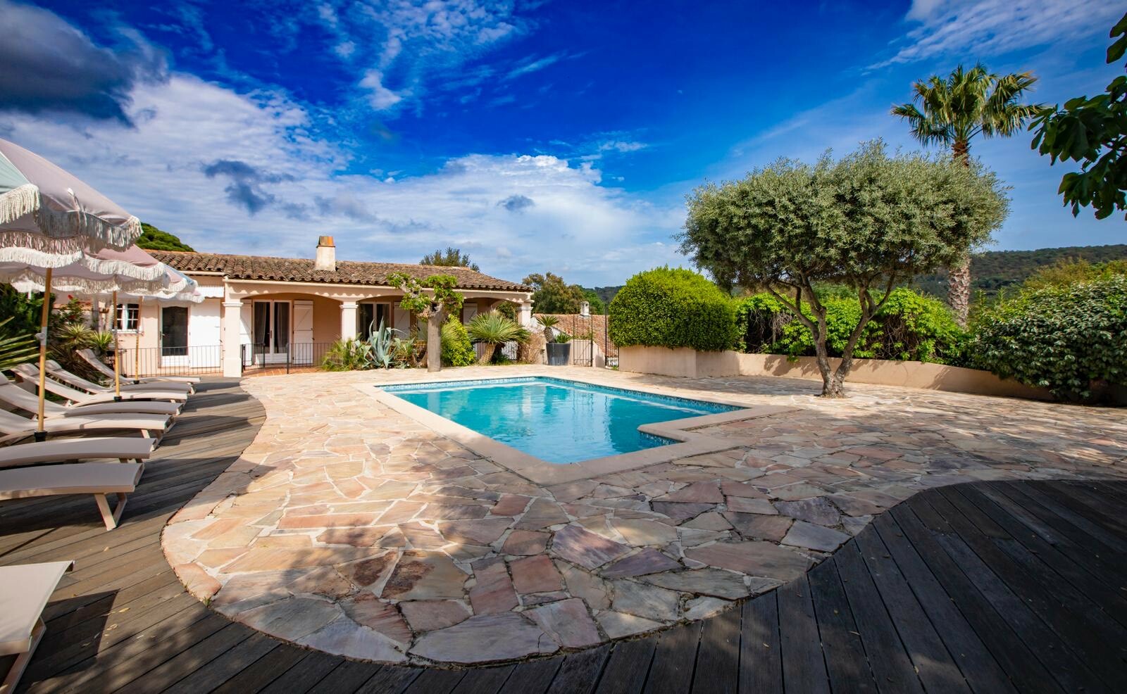 À proximité des plages et de Saint-Tropez, la villa pastel peut accueillir 12 voyageurs. Elle se compose de 6 chambres, 4 salles de bain, une vaste terrasse arborée avec espace piscine, barbecue, transat et une baby foot.