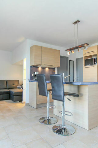En rez-de-chaussée, appartement entièrement rénové se composant d'un séjour avec coin nuit et cuisine, une chambre avec salle de douches et un toilette indépendant. Terrasse avec jardin et barrière de protection sur le canal.Reference : PG601