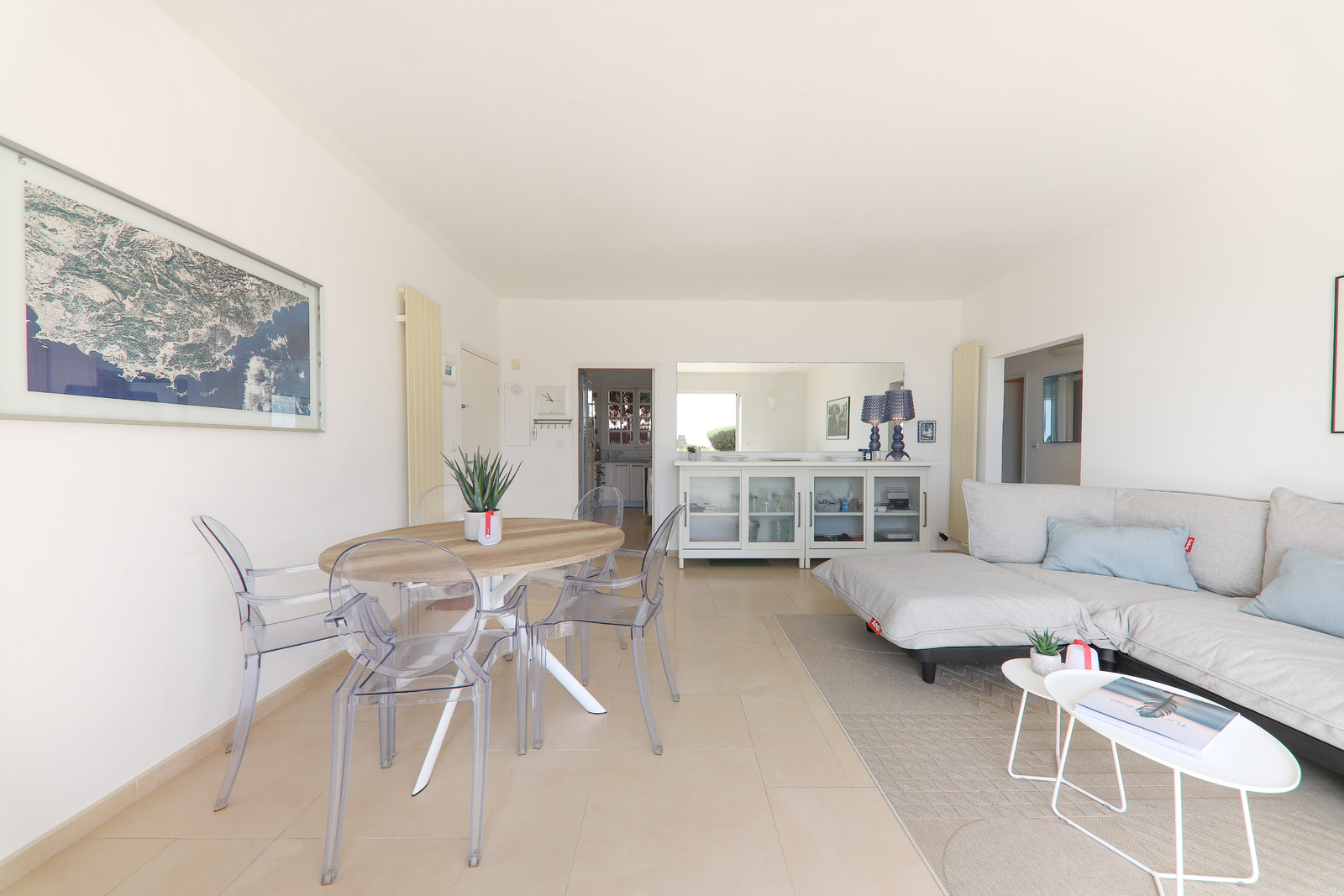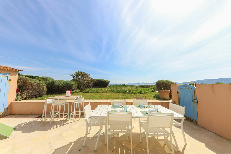 Cet appartement se compose d’un séjour s'ouvrant sur la terrasse qui donne directement sur la plage où vous pourrez admirer une magnifique vue mer panoramique sur le Golfe de Saint Tropez, une cuisine tout équipée, trois chambres, une salle de bains et un toilette indépendant. Reference : PG973