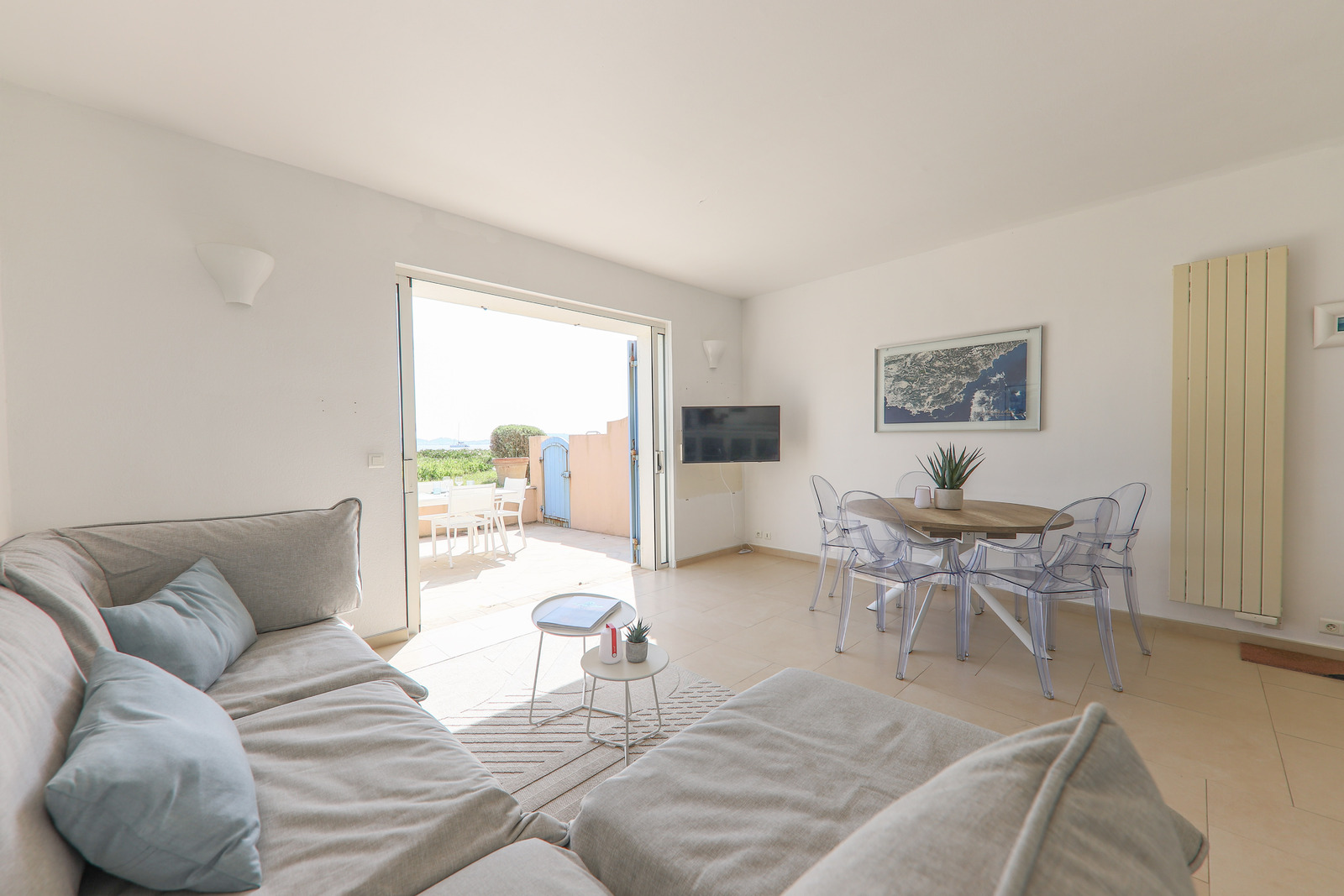 Au cœur du Golfe de Saint Tropez, cet appartement de 3 chambres se situe au rez de chaussée d'un immeuble sécurisé avec accès direct sur la plage.
