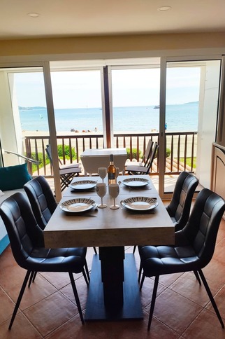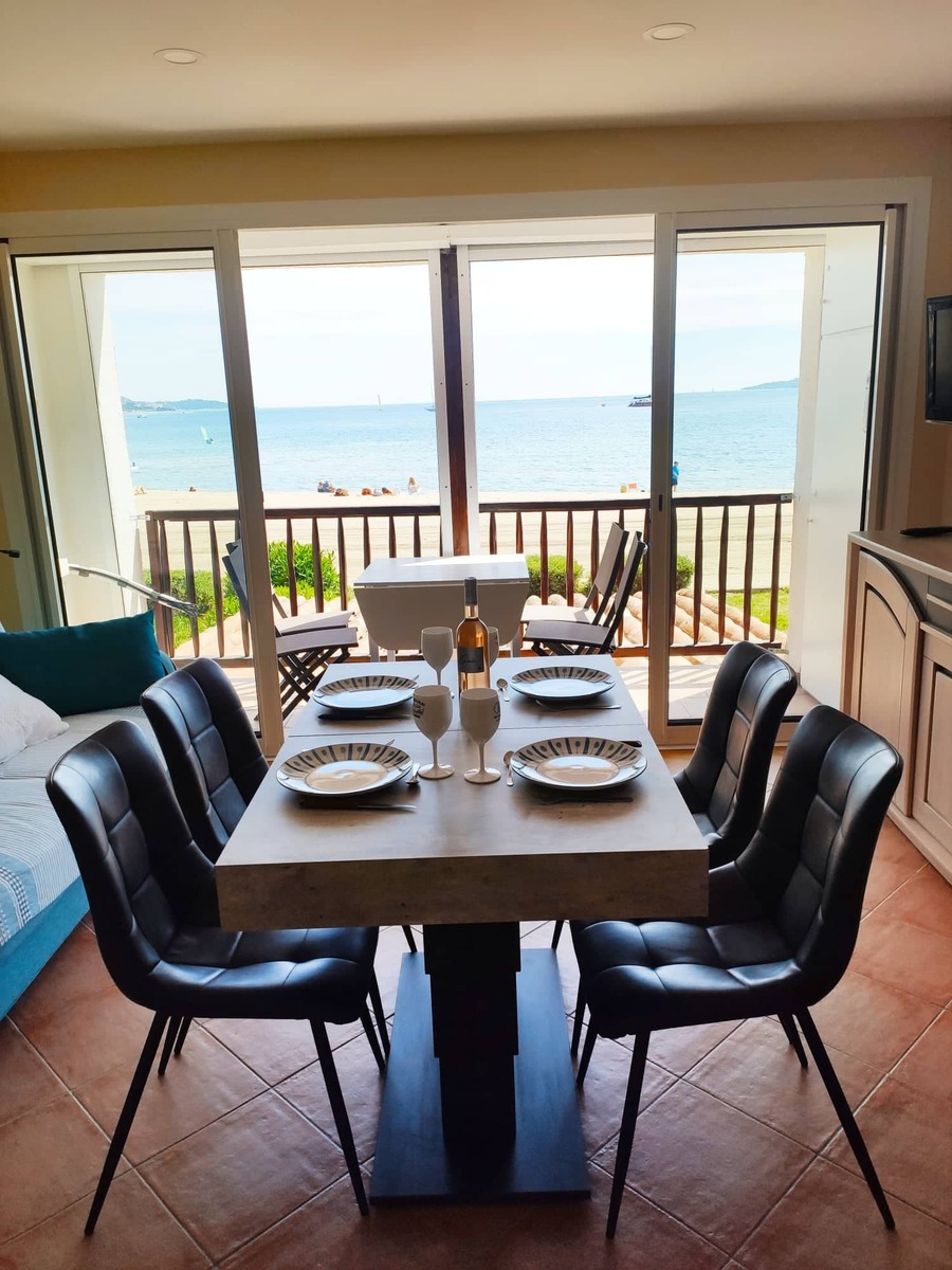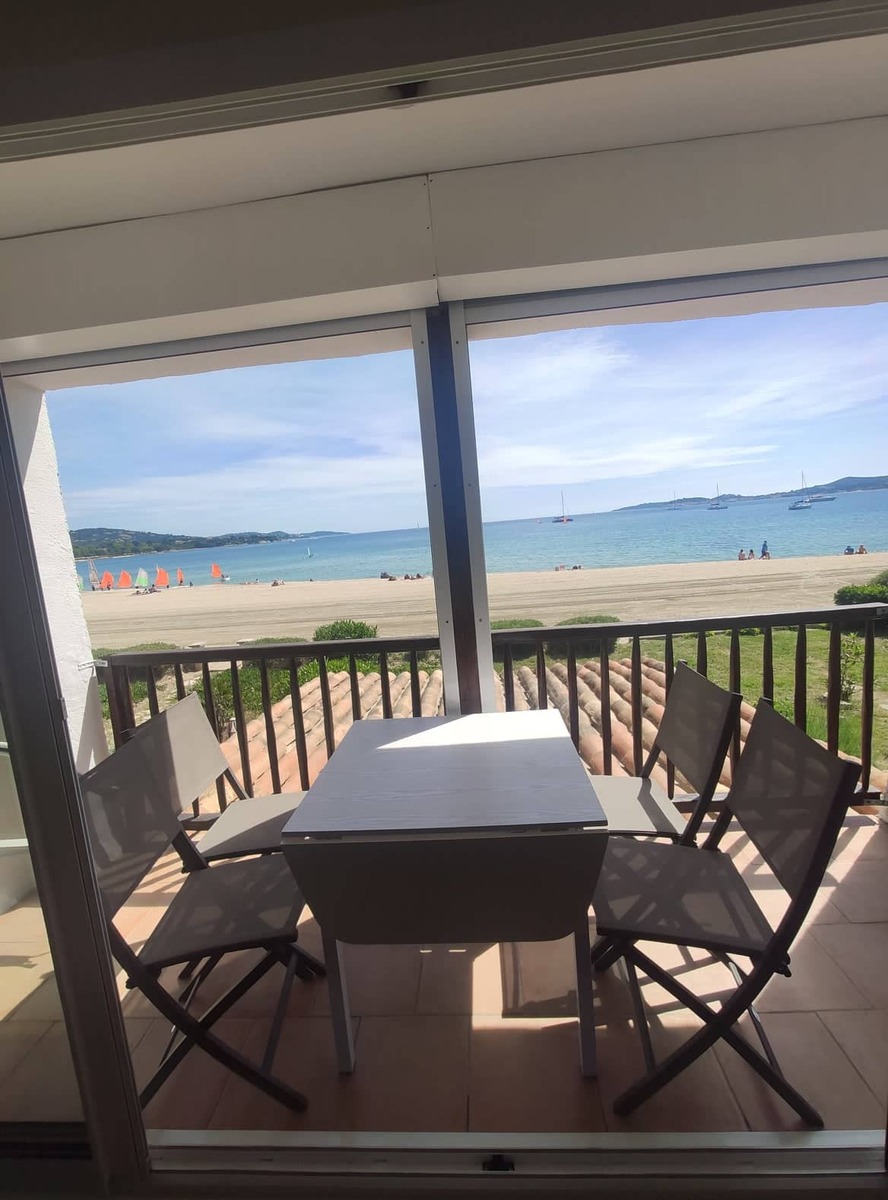 Nous vous proposons: idéalement situé sur la plage avec vue sur le golfe de St Tropez pour 2/4 personnes, au 1er étage d'un petit immeuble avec accès direct à la plage. Ce studio bénéficie d'une vue exceptionnelle sur la mer.