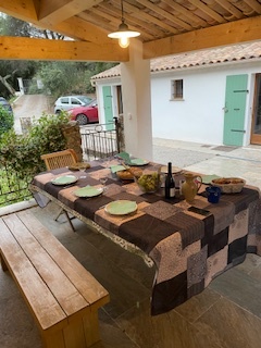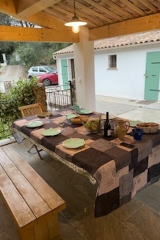 Les repas en plein air peuvent se prendre sur l’une ou l’autre des terrasses, en fonction de la chaleur et de leur ombrage.