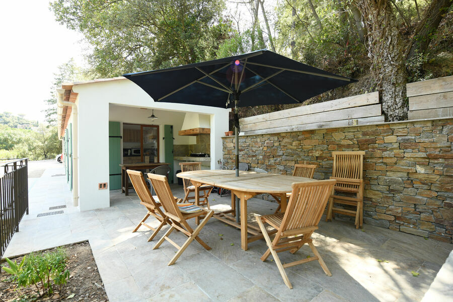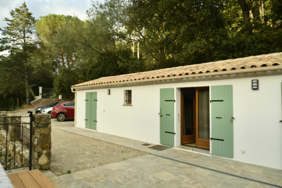 Propriété de 110 m² habitable, située sur un terrain de 4400 m², sans voisinage immédiat, dans une vallée classée en site naturel où coule la rivière La Garde. Elle se situe à 900 m à pied du très beau village médiéval de Grimaud, connu pour ses concerts d’été dans son château.