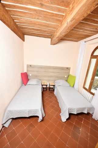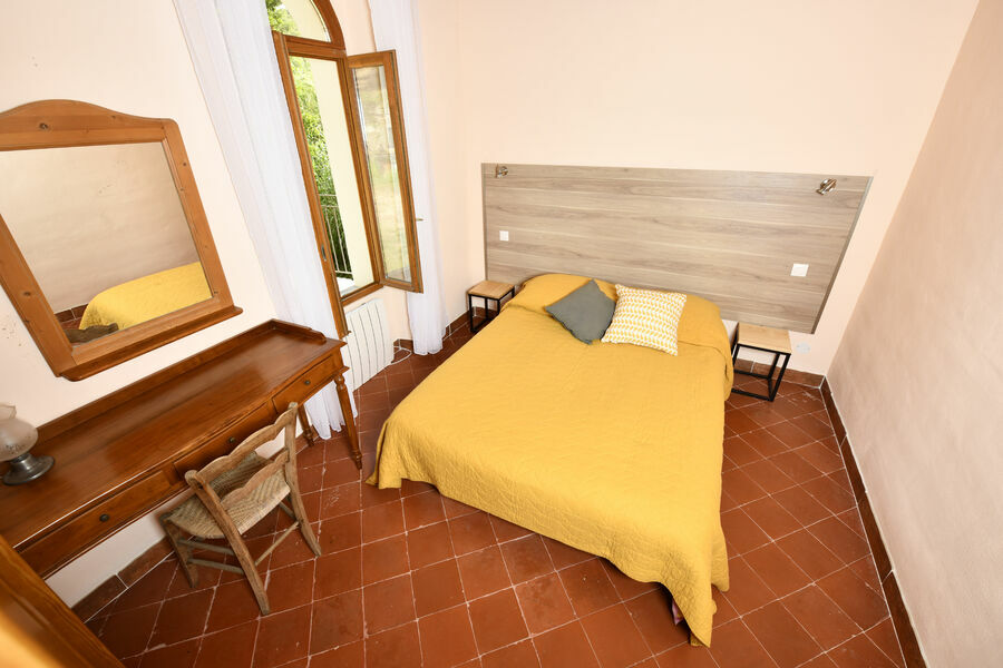 Le bas du moulin comprend 2 chambres doubles climatisées, 1 grande salle de bain et des WC séparés, avec accès direct au nord sur le jardin et au sud sur la piscine, et avec une vue panoramique splendide sur les collines, la vallée et la rivière.