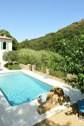 Magnifique propriété sans voisinage immédiat, de 4 chambres, 3 salles de bains, piscine privée, sur 4400 m² de terrain arboré, à 900 m du très beau village médiéval de Grimaud.
