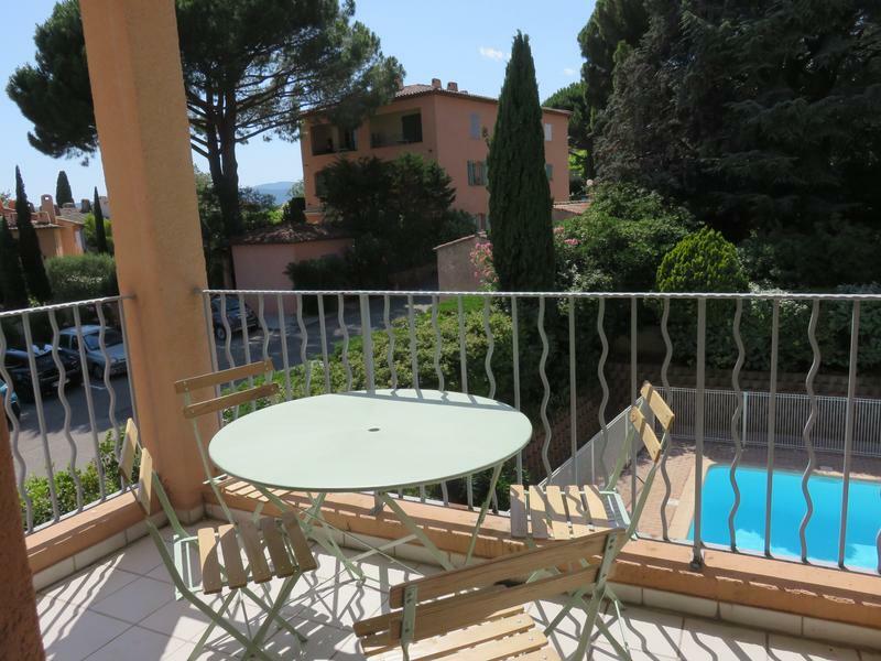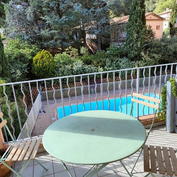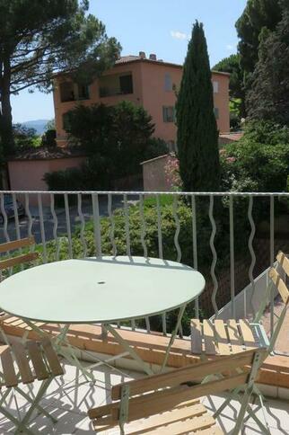 Agréable appartement lumineux, climatisé pour 4 personnes , situé en limite du village médiéval de Grimaud que vous pourrez admirez depuis la terrasse au-dessus de la piscine.