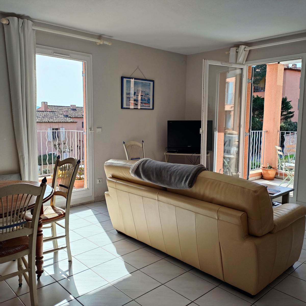 Proche de toutes commodités, à 2 minutes à pieds du centre du village et de ses commerces, à 5 km de la plage public de sable fin de "Port Grimaud" et à 20m d'un arrêt de bus déservant tout le golf.Situé au 2° étage avec ascenseur, dans une petite résidence avec accès à la piscine de la copropriété, vous disposerez dans ce grand T3 de 62m2 :