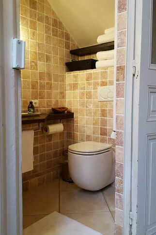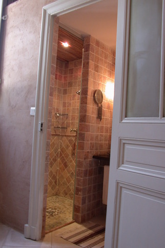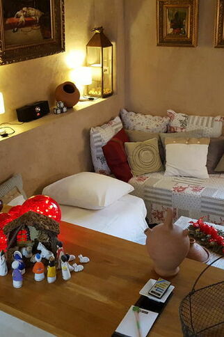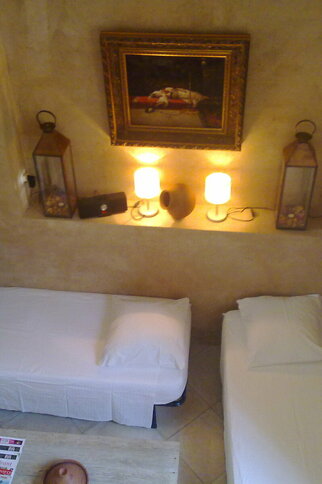 Dans la partie salon, il y a 2 lits de 80x190cm qui font aussi usage de canapés si l’appartement n'est occupé que par deux personnes, ainsi qu'une salle de douche avec WC.