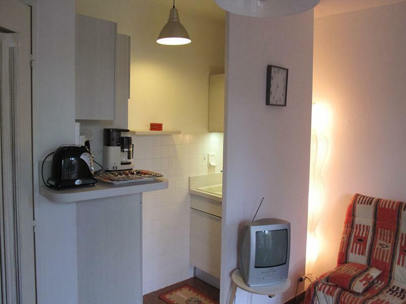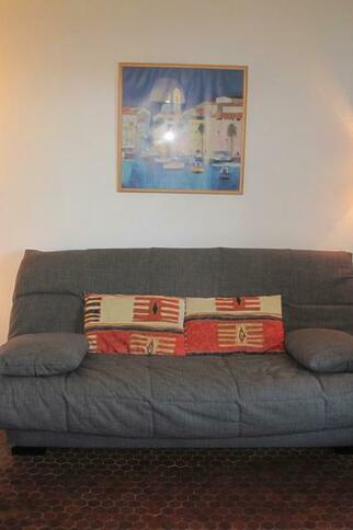 Grand studio avec une pièce fermée comportant 2 lits superposés plus commode et un séjour spacieux avec lit clic-clac matelas d'une pièce confortable récent. Le séjour est ouvert sur la terrasse avec 2 portes fenêtres.
