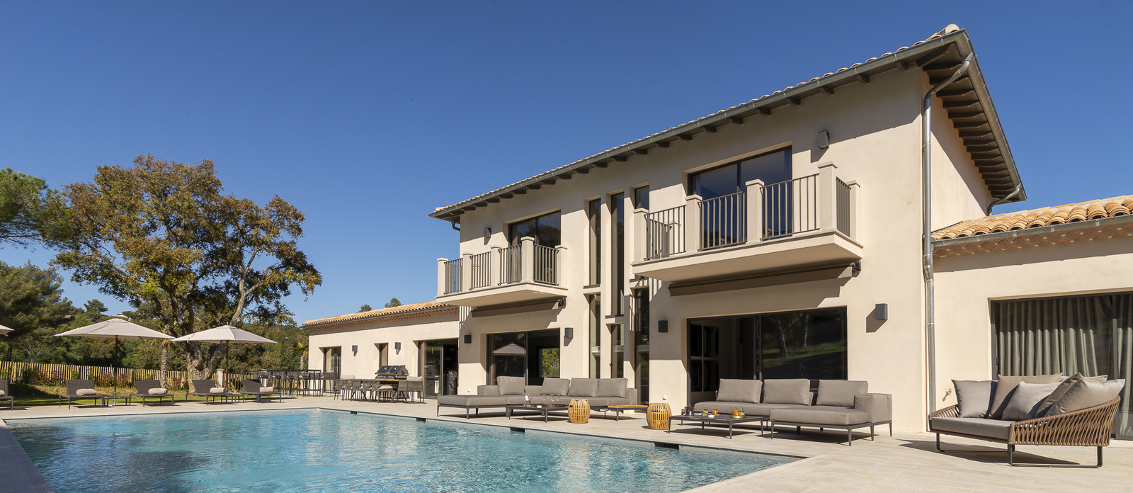 D'une superficie de 470 m² composée de 7 chambres et 7 salles de bain (une villa principale et une dépendance, occupation jusqu'à 12 personnes) avec vue sur le parc du Domaine, piscine privative chauffée, salle de sport, jardin, garage deux placesUne résidence principale et une résidence secondaire