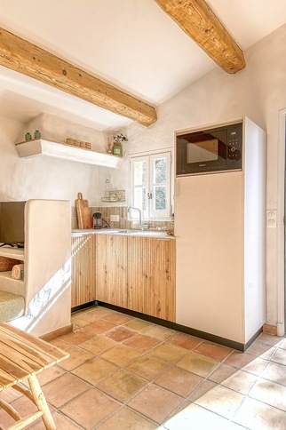 Petite bastide de 45m² pour 4 personnes (2 adultes et 2 enfants), typiquement provençale, entièrement rénovée et décorée avec goût, confort optimal. Elle est composée d'une chambre climatisée (avec lit de 160cm), une pièce de vie salon (avec banquette couchage des enfants), cuisine équipée et climatisée. A l'extérieure une belle piscine avec transats et salon de jardin.
