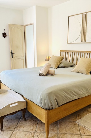 Une chambre à l’étage avec 2 lits (80x190) avec terrasse tropézienne.