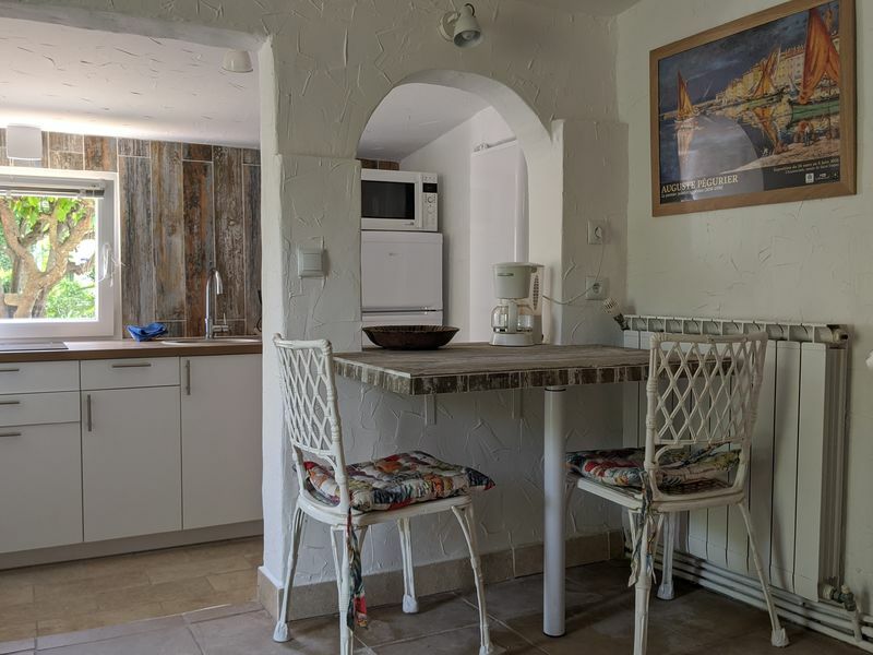 Charmante maisonnette de plein pied avec terrasse équipée privative et accès à la piscine partagée avec la maison d'hôtes.