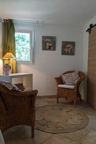 Située à seulement cinq minutes à pied du centre- village du Plan de la Tour, un village qui a su préserver son authenticité, à l‘écart du tumulte des villes pittoresques à proximité et dont la renommée n’est plus à faire comme Saint Tropez, Sainte Maxime, Grimaud… vous pourrez pleinement profiter de cette charmante maisonnette de plein pied avec tout le confort pour 2 personnes, dans un environnement calme et un cadre reposant et goûter au « farniente » provençal dans le grand jardin ou au bord de la piscine partagée. Un territoire et de nombreuses balades à découvrir....