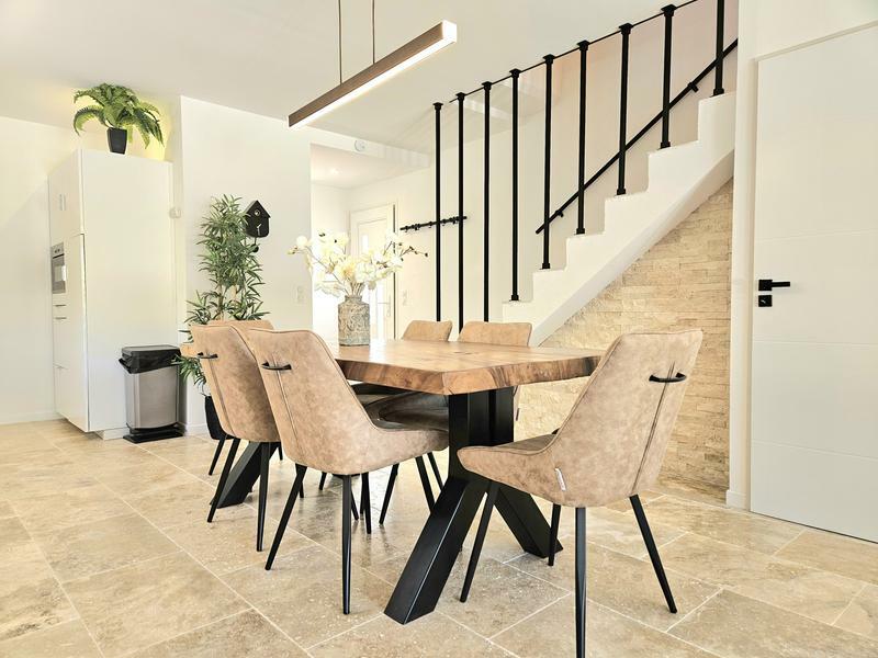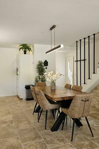 Dans le style moderne mais chaleureux de la Villa Bambou, le calme et l’atmosphère occupent une place centrale. Le sol en travertin est associé à des couleurs de base comme le blanc, le noir, le beige et des tons orange/terra. Des matériaux tels que le cuir, le bois et le lin se retrouvent dans l’intérieur. Un équilibre parfait entre fraîcheur, sérénité, lumière et chaleur — l’ambiance idéale pour vos vacances bien méritées.